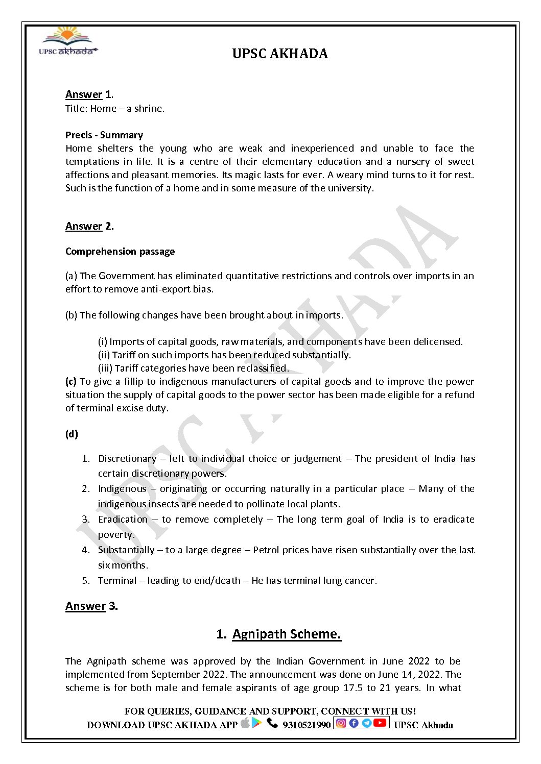 / UPSC AKHADA 2022 TEST-1 MODEL ANSWERS HCS ENGLISH MAINS TEST SERIES 2022 GS (BLACK & WHITE)