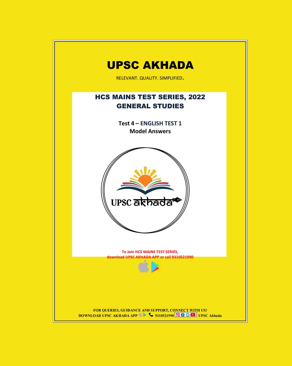 UPSC AKHADA 2022 TEST-1 MODEL ANSWERS HCS ENGLISH MAINS TEST SERIES 2022 GS (BLACK & WHITE)