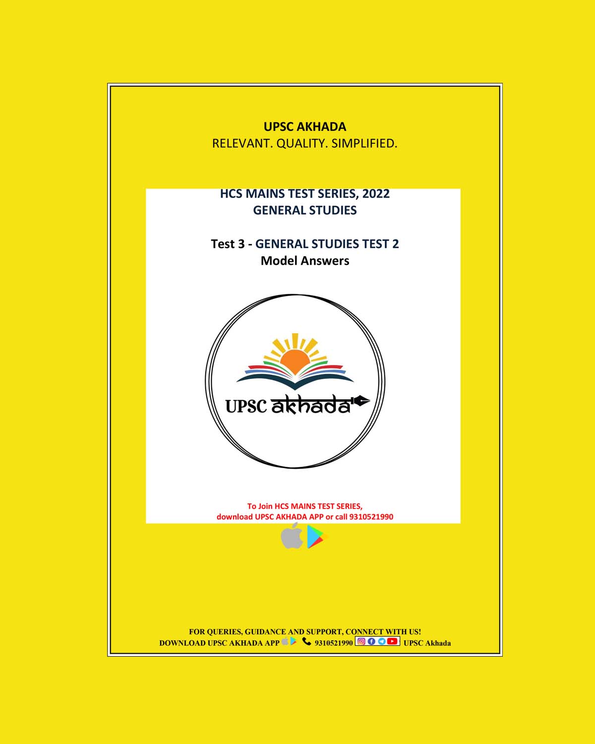 / UPSC AKHADA 2022 TEST-3 MODEL ANSWERS HCS-GS.MAINS TEST SERIES 2022 GS (BLACK & WHITE)