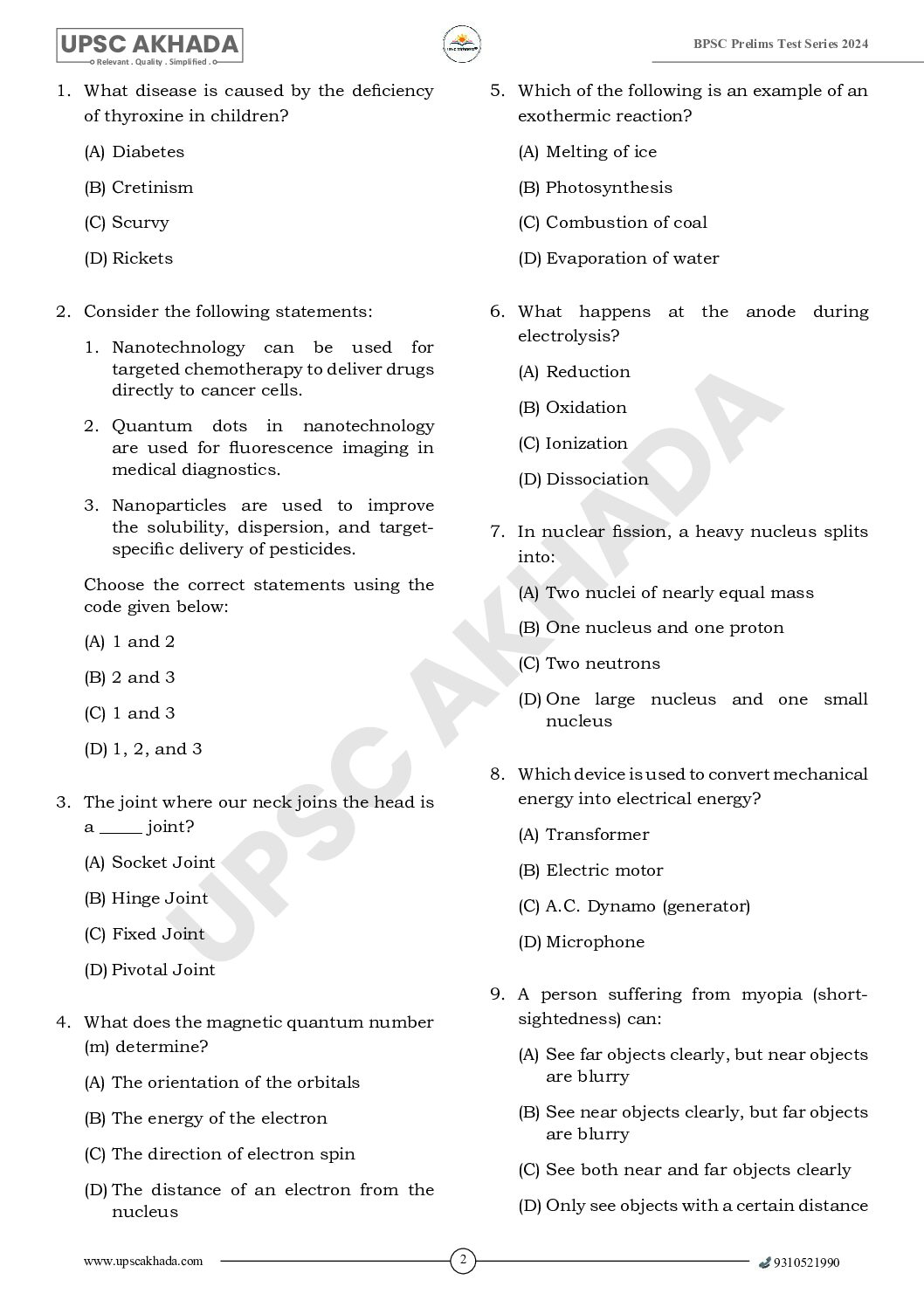/ UPSC AKHADA BPSE 70TH PRELIMS 2024 TEST-9 (FULL LENGTH TEST-2) FINAL (ENGLISH) {BLACK AND WHITE}