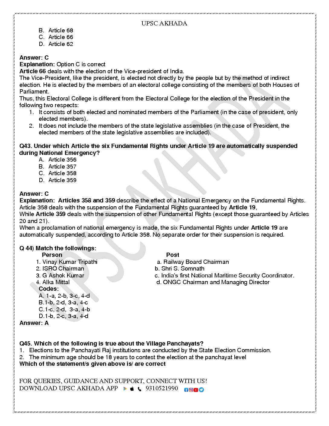 / UPSC AKHADA POLITY & CURRENT AFFAIRS TEST SERIES 2022- TEST-4 (BLACK & WHITE)