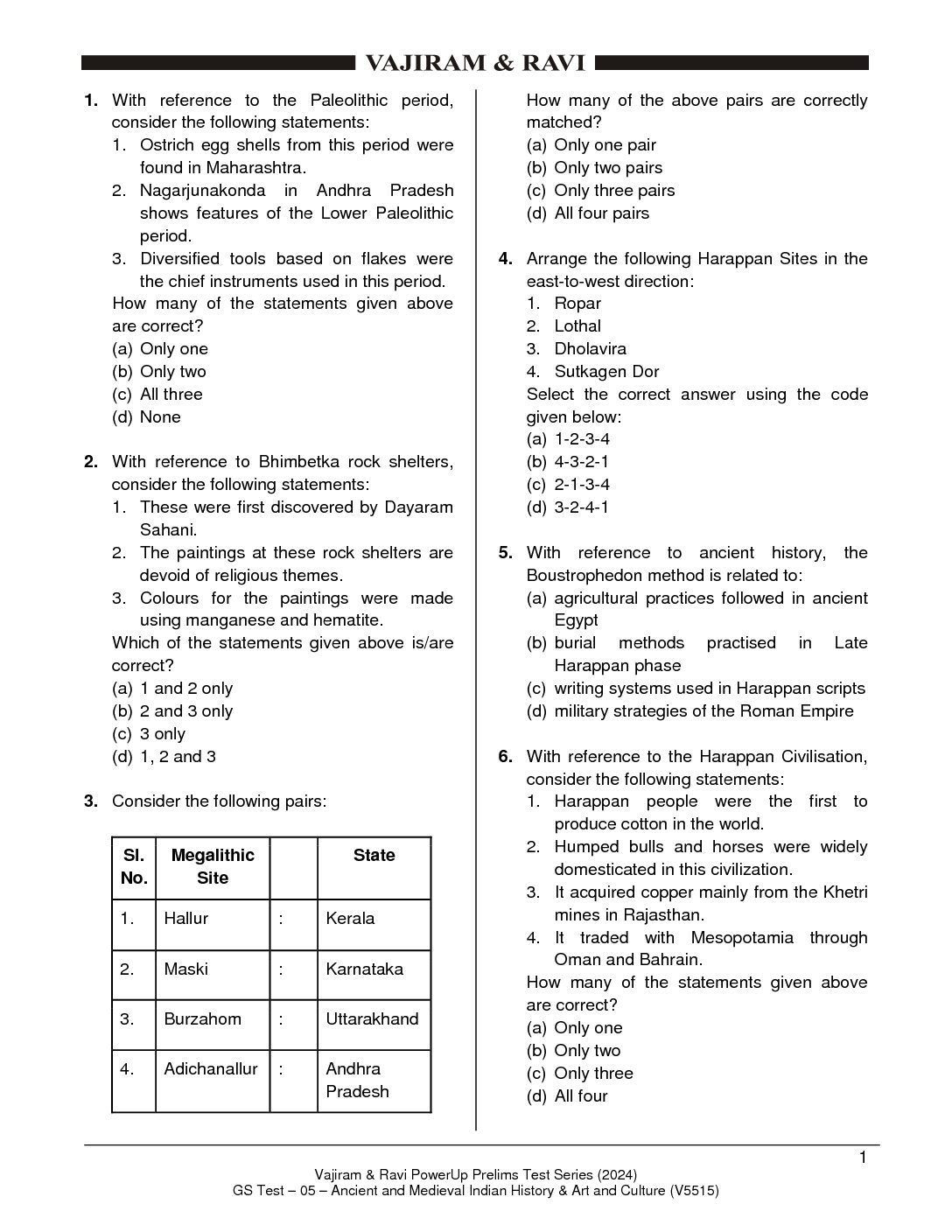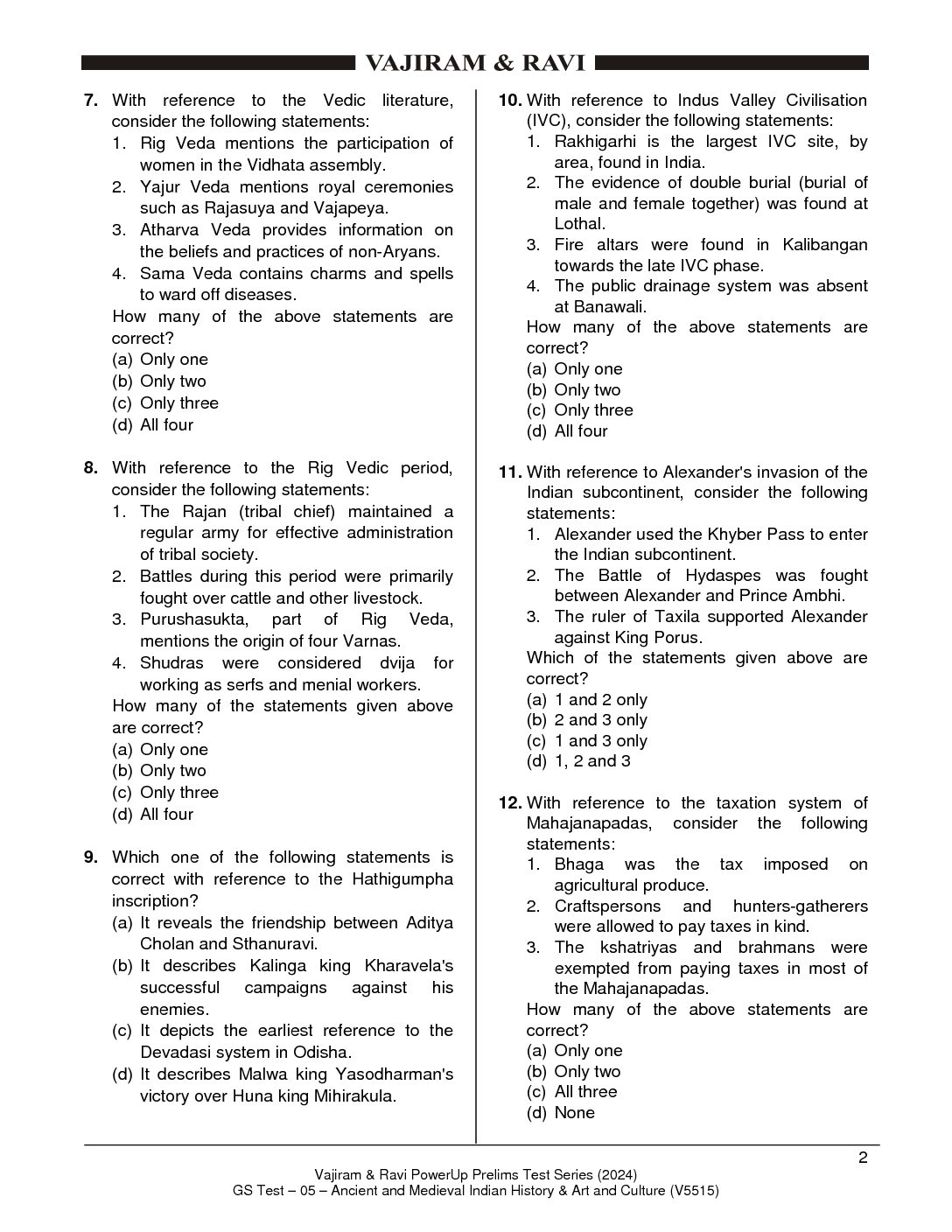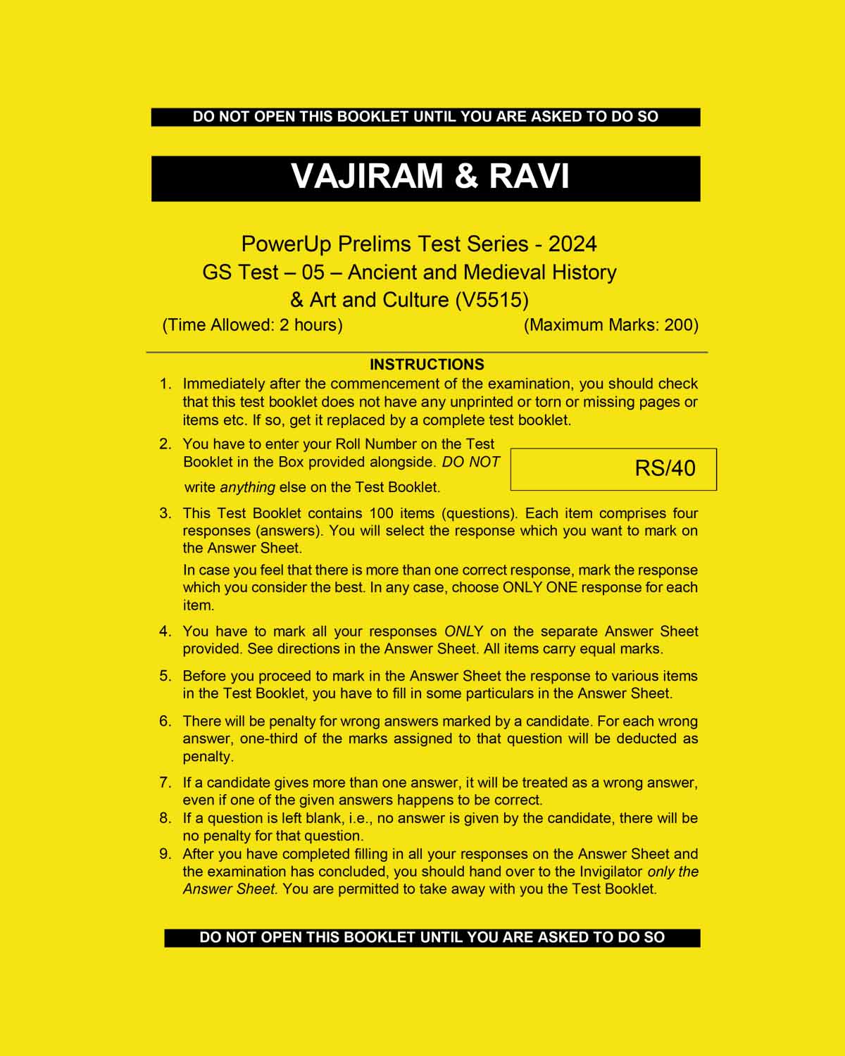 / VAJIRAM AND RAVI 2024 TEST -05 ANCIENT AND MEDIEVAL & ART AND CULTURE 2024 FINAL {ENGLISH} {BLACK AND WHITE}