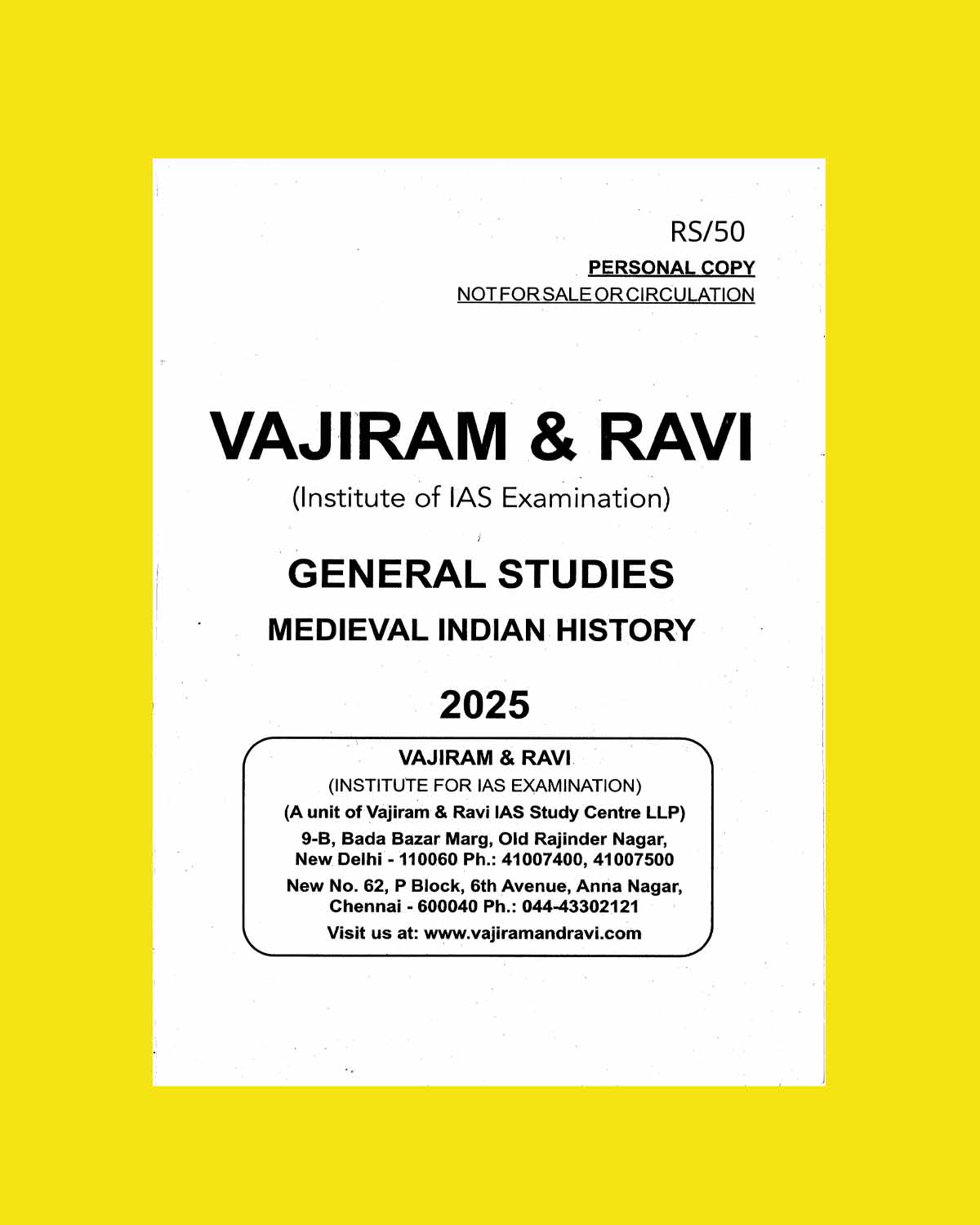 VAJIRAM AND RAVI 2025 PRINTED MEDIEVAL INDIAN HISTORY FINAL (ENGLISH) {BLACK AND WHITE} quantity