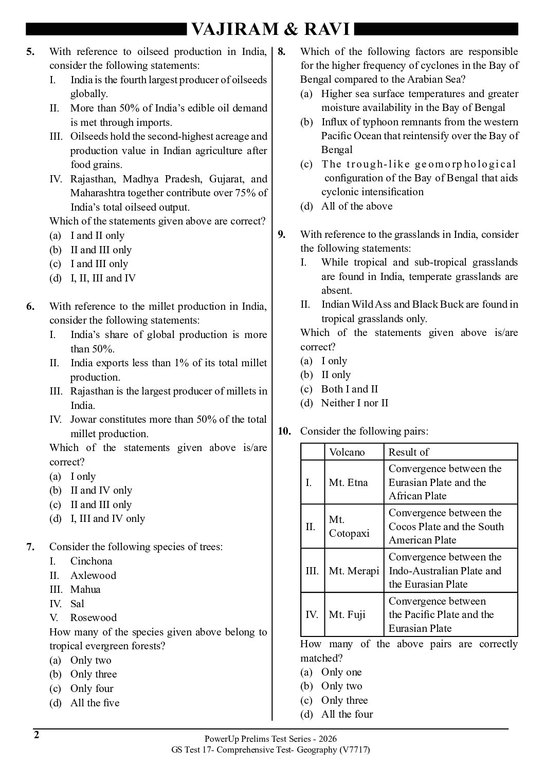 / VAJIRAM AND RAVI 2026 TEST-17 COMPREHENSIVE TEST-GEOGRAPHY (V7717) 2026 FINAL (ENGLISH) {BLACK AND WHITE}