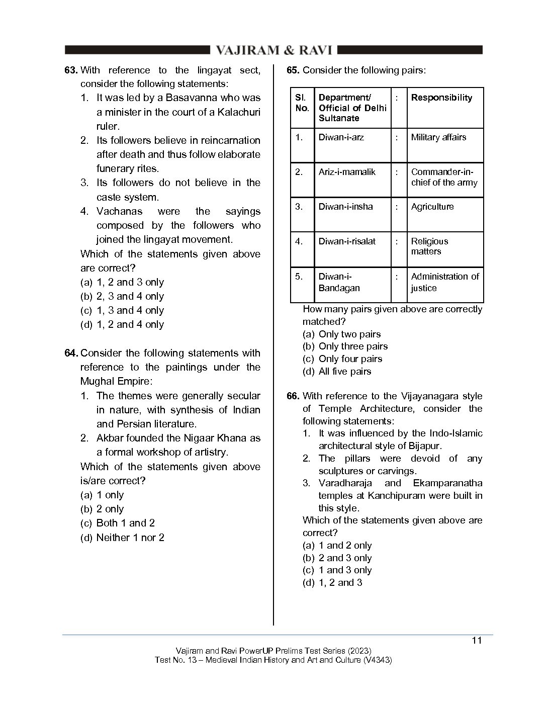 VAJIRAM & RAVI 2023 POWERUP PRELIMS TEST-13 MEDIEVAL INDIAN HISTORY & ART AND CULTURE (BLACK & WHITE)