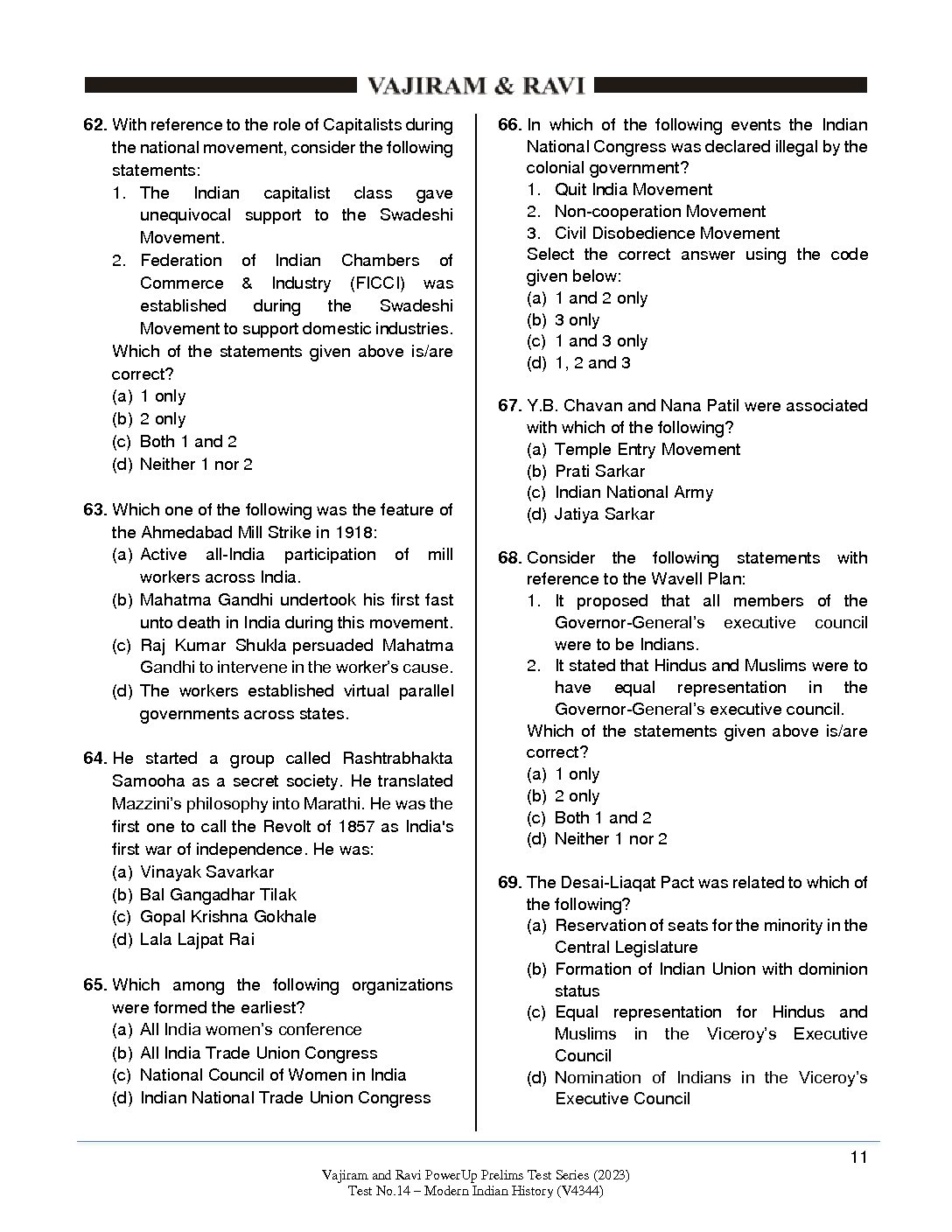 VAJIRAM & RAVI 2023 POWERUP PRELIMS TEST-14 MODERN INDIAN HISTORY (BLACK & WHITE) (BLACK & WHITE)