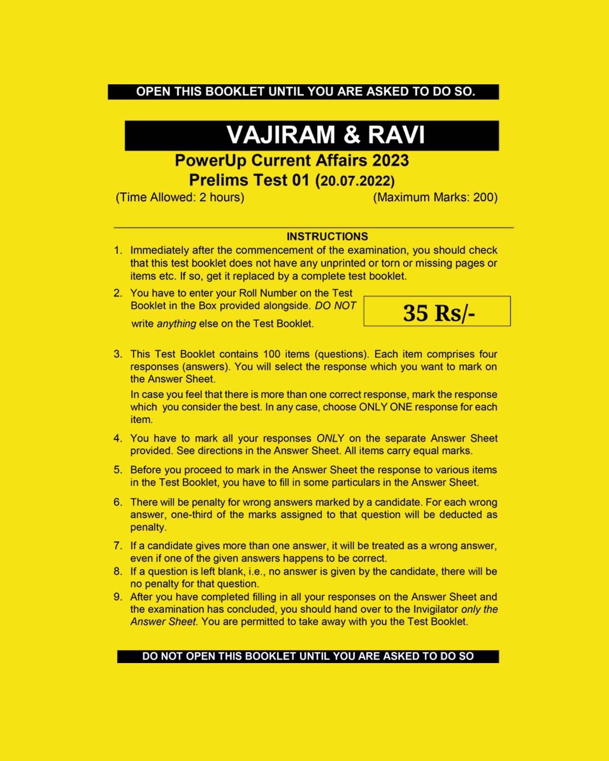 / VAJIRAM & RAVI 2023 TEST-1 (POWER UP CURRENT AFFAIRS 2023- PRELIMS ) (BLACK & WHITE)