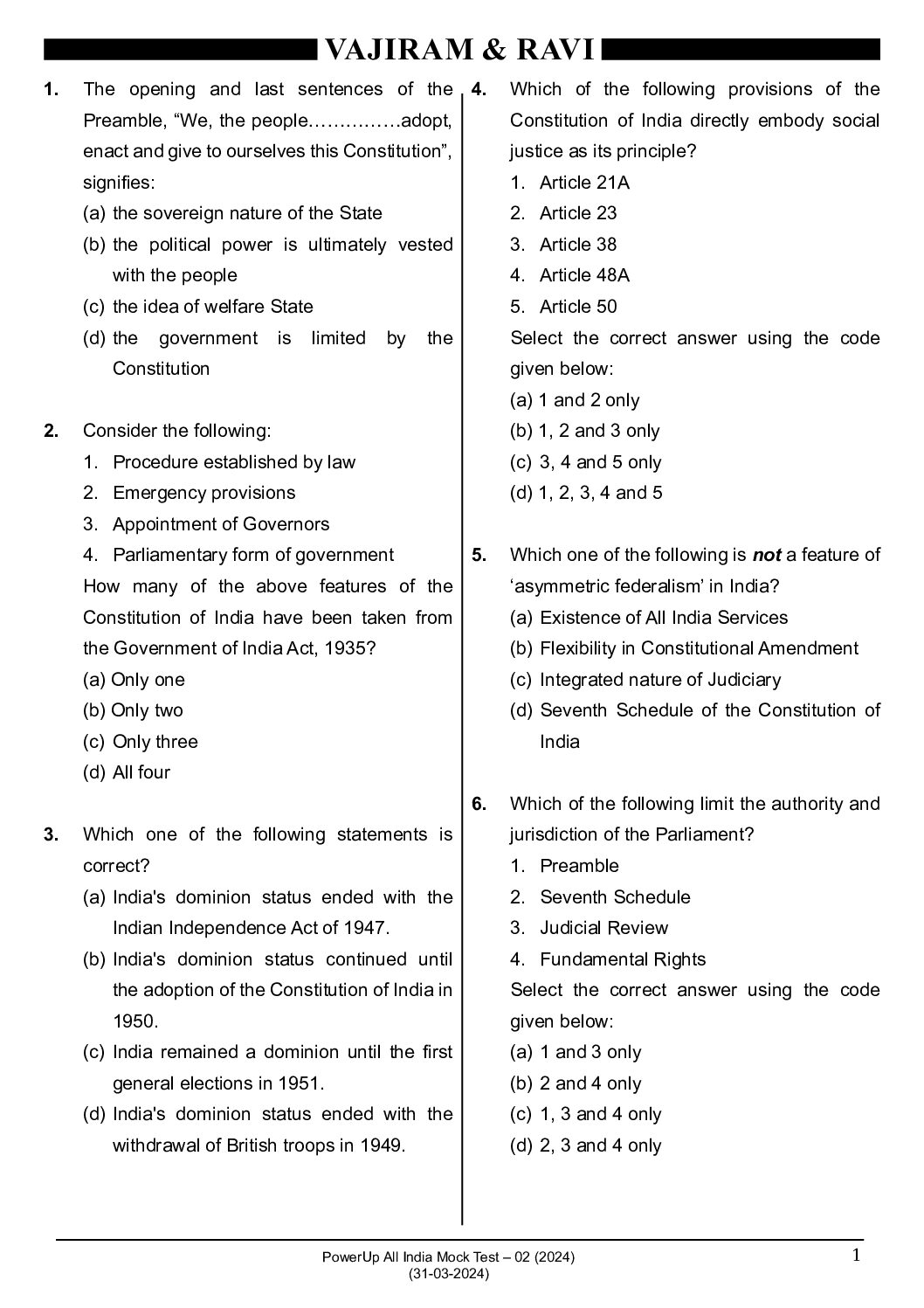 VAJIRAM& RAVI 2024 ALL INDIA MOCK TEST-2 2024 FINAL {ENGLISH} {BLACK AND WHITE}
