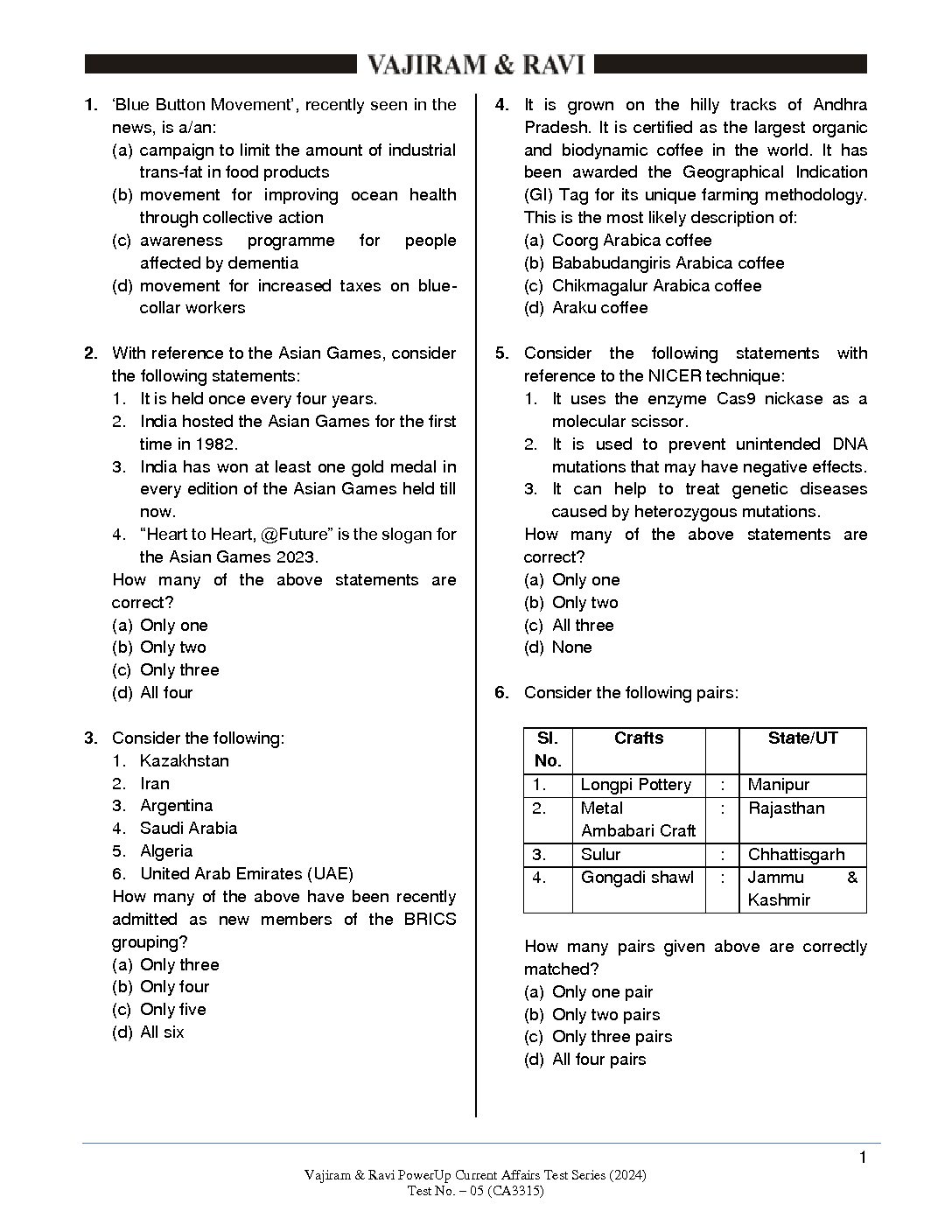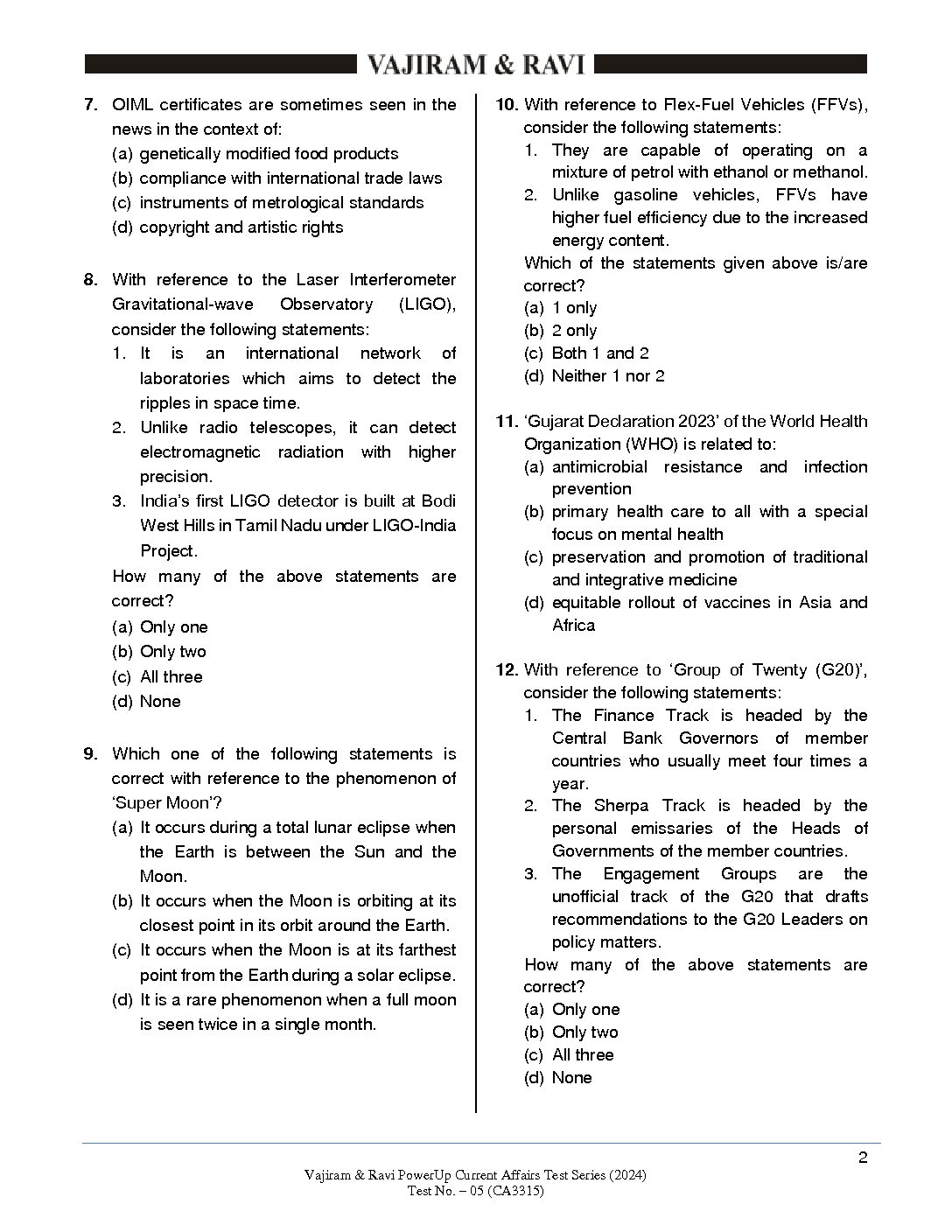 / VAJIRAM & RAVI 2024 CA TEST-05 2024 FINAL {CA-3315} {ENGLISH} {BLACK AND WHITE}