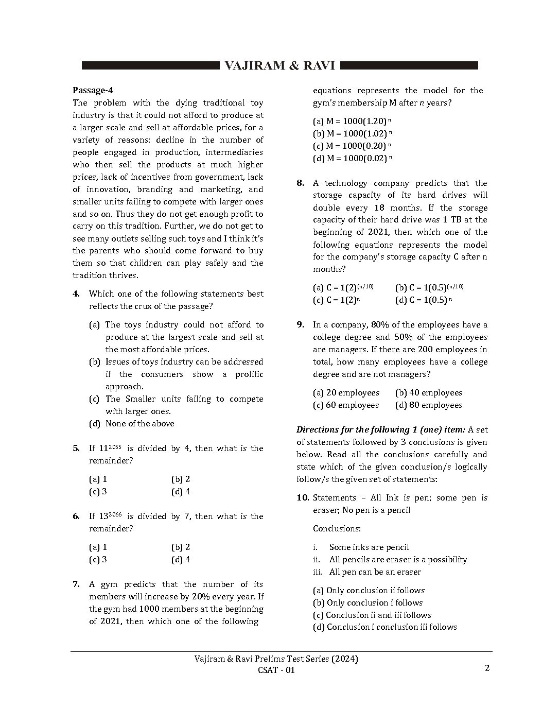 / VAJIRAM & RAVI 2024 CSAT TEST-1 2024 FINAL {ENGLISH} {BLACK AND WHITE}