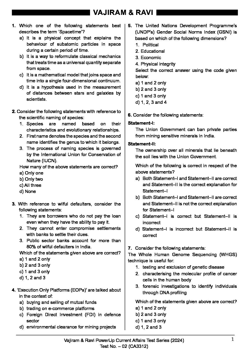 / VAJIRAM & RAVI 2024 CURRENT AFFAIRS TEST-02 (CA3312) 2024 ENGLISH MEDIUM (BLACK & WHITE)