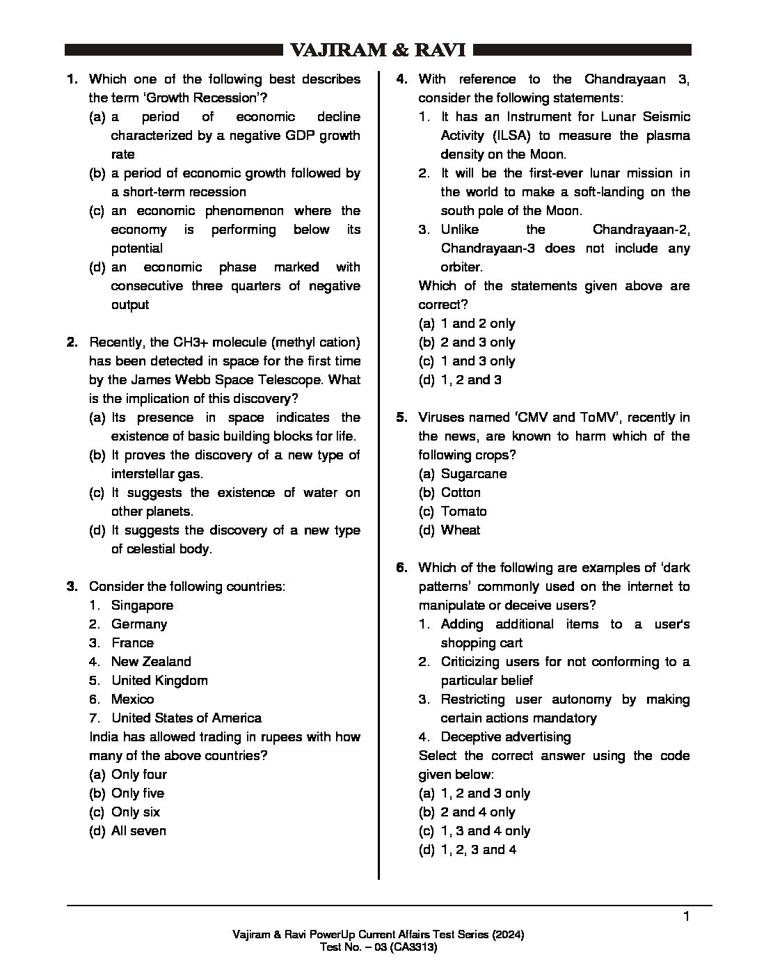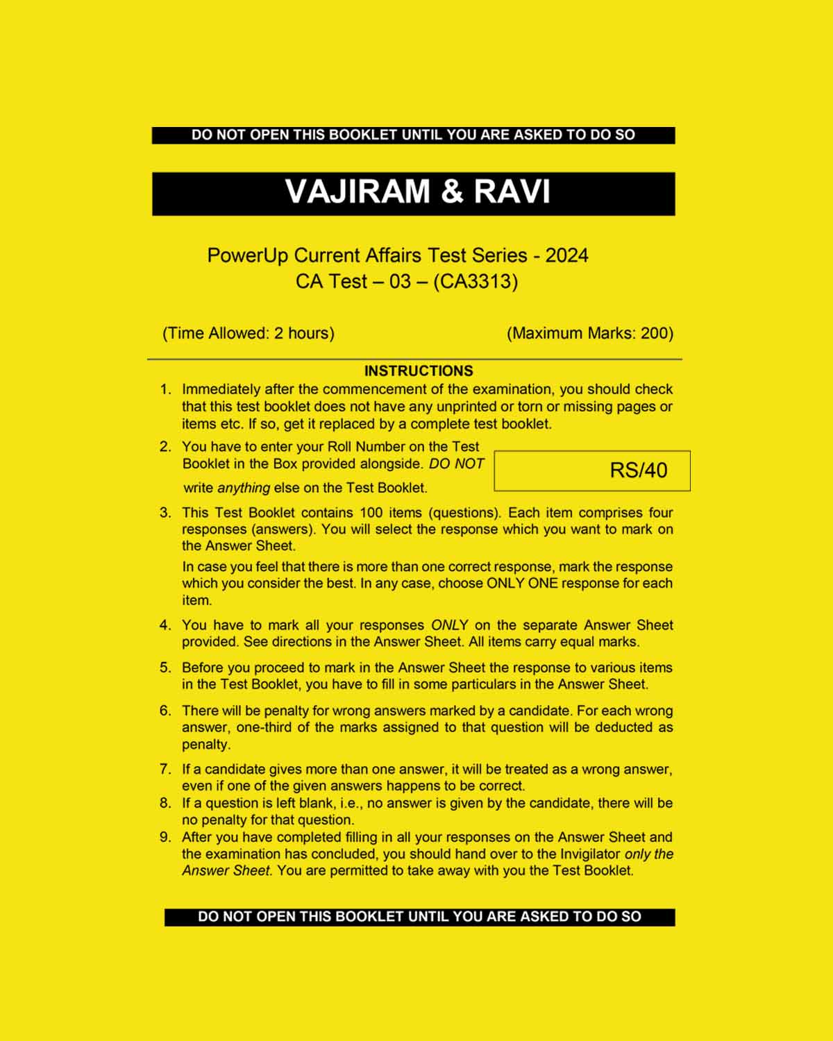 / VAJIRAM & RAVI 2024 CURRENT AFFAIRS TEST-03 (CA3313) 2024 ENGLISH MEDIUM (BLACK & WHITE)