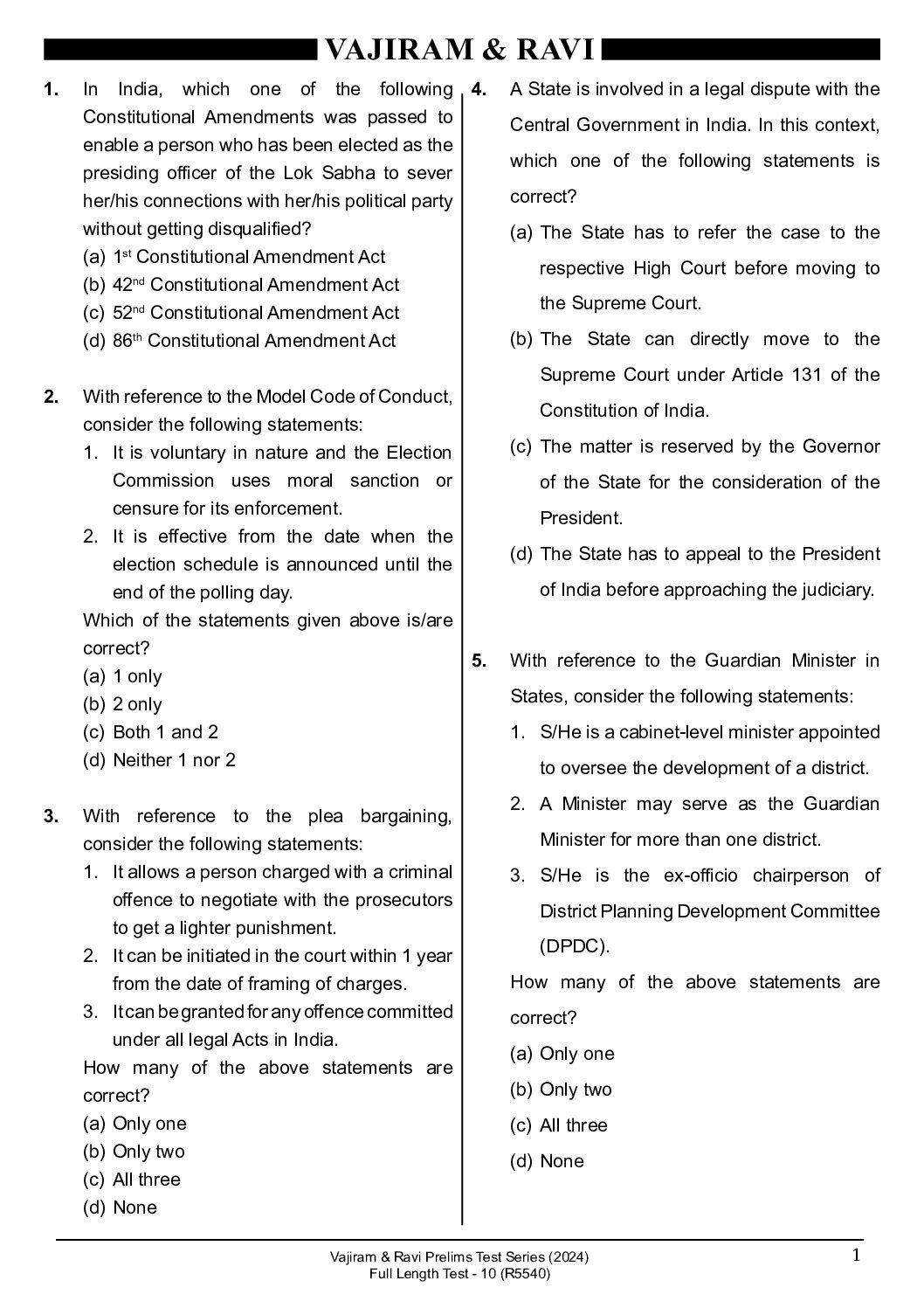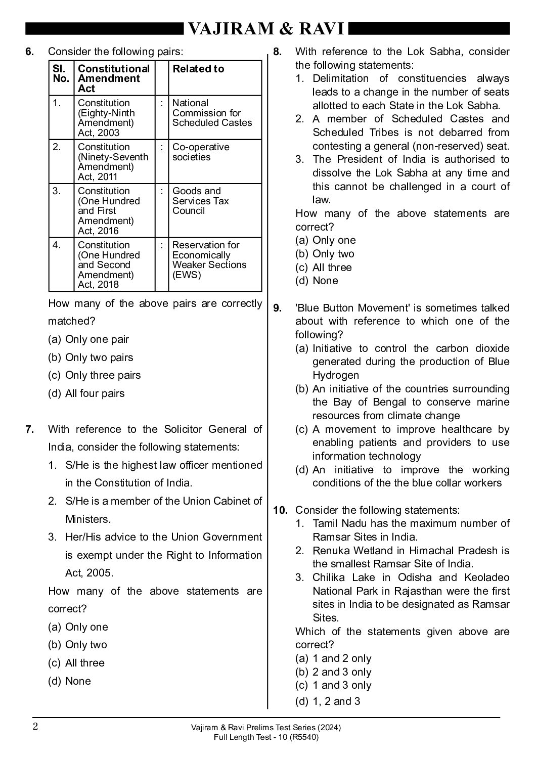 VAJIRAM & RAVI 2024 FULL TEST-10 2024 FINAL (ENGLISH) {BLACK AND WHITE}