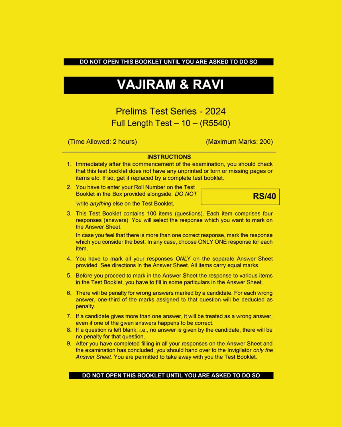/ VAJIRAM & RAVI 2024 FULL TEST-10 2024 FINAL (ENGLISH) {BLACK AND WHITE}