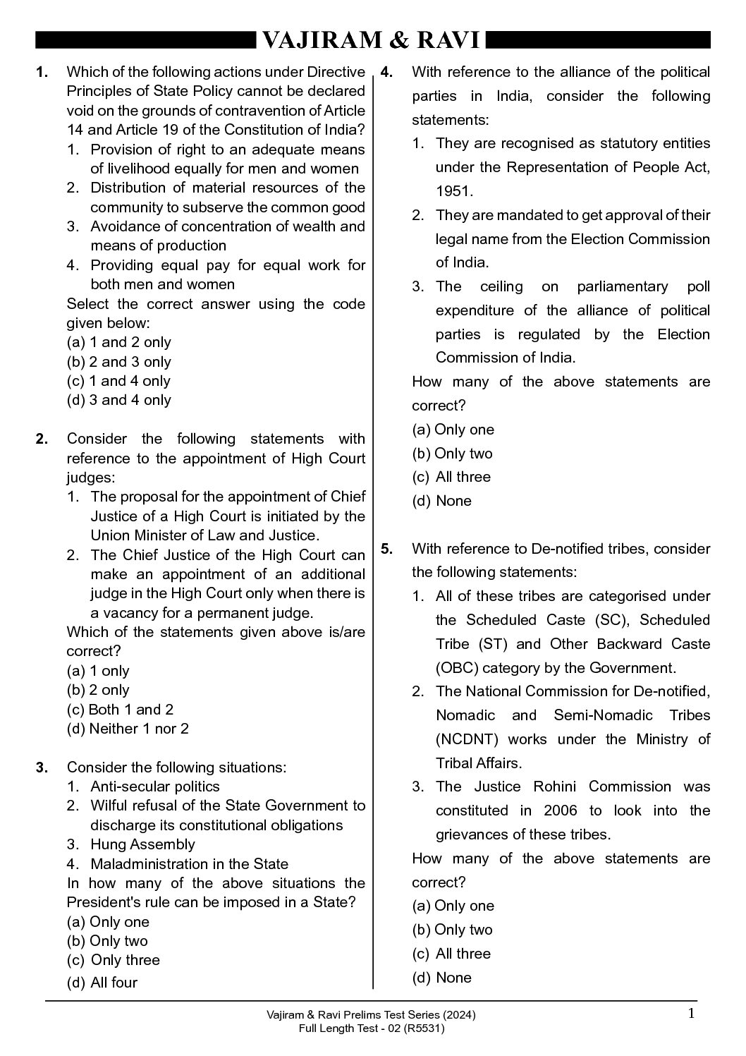 / VAJIRAM & RAVI 2024 FULL TEST-2 2024 FINAL {ENGLISH} {BLACK AND WHITE}