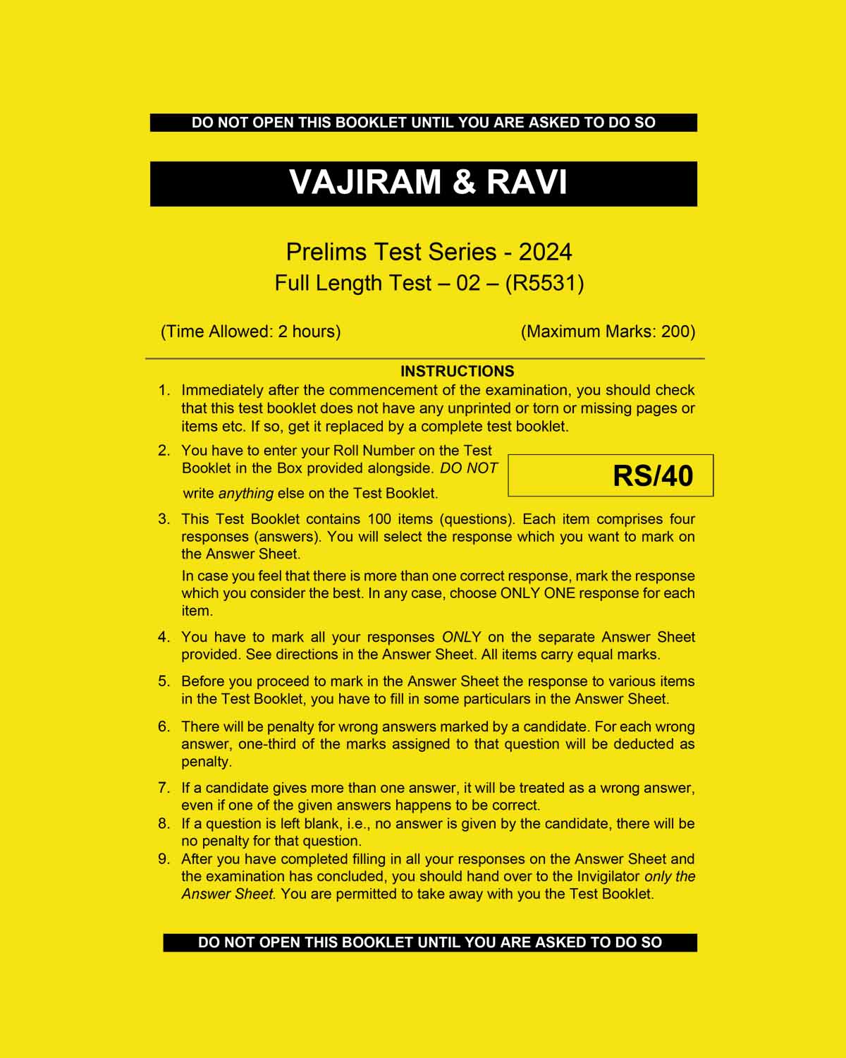 VAJIRAM & RAVI 2024 FULL TEST-2 2024 FINAL {ENGLISH} {BLACK AND WHITE} quantity
