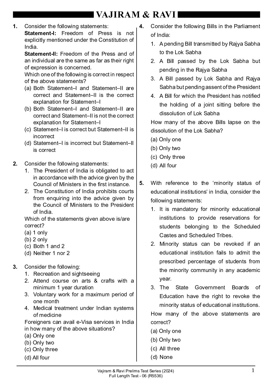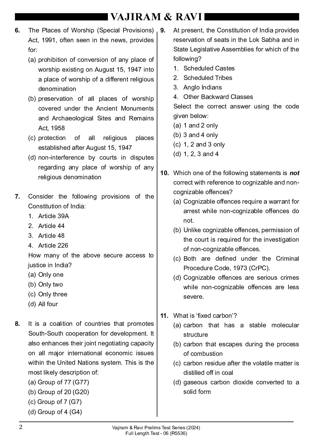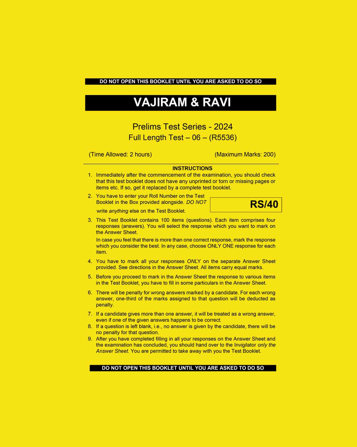 / VAJIRAM & RAVI-2024 FULL TEST-6 2024 FINAL {ENGLISH} {BLACK AND WHITE}