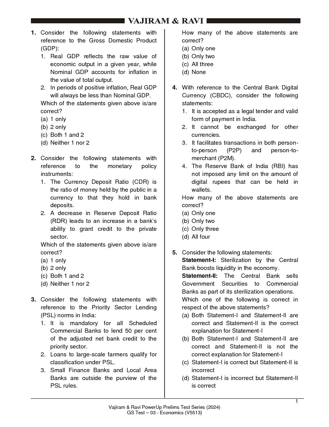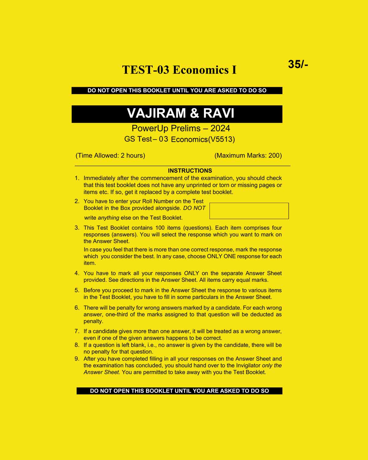 / VAJIRAM & RAVI 2024 GS TEST-03 (V5513) ECONOMICS-I ENGLISH MEDIUM (BLACK & WHITE)