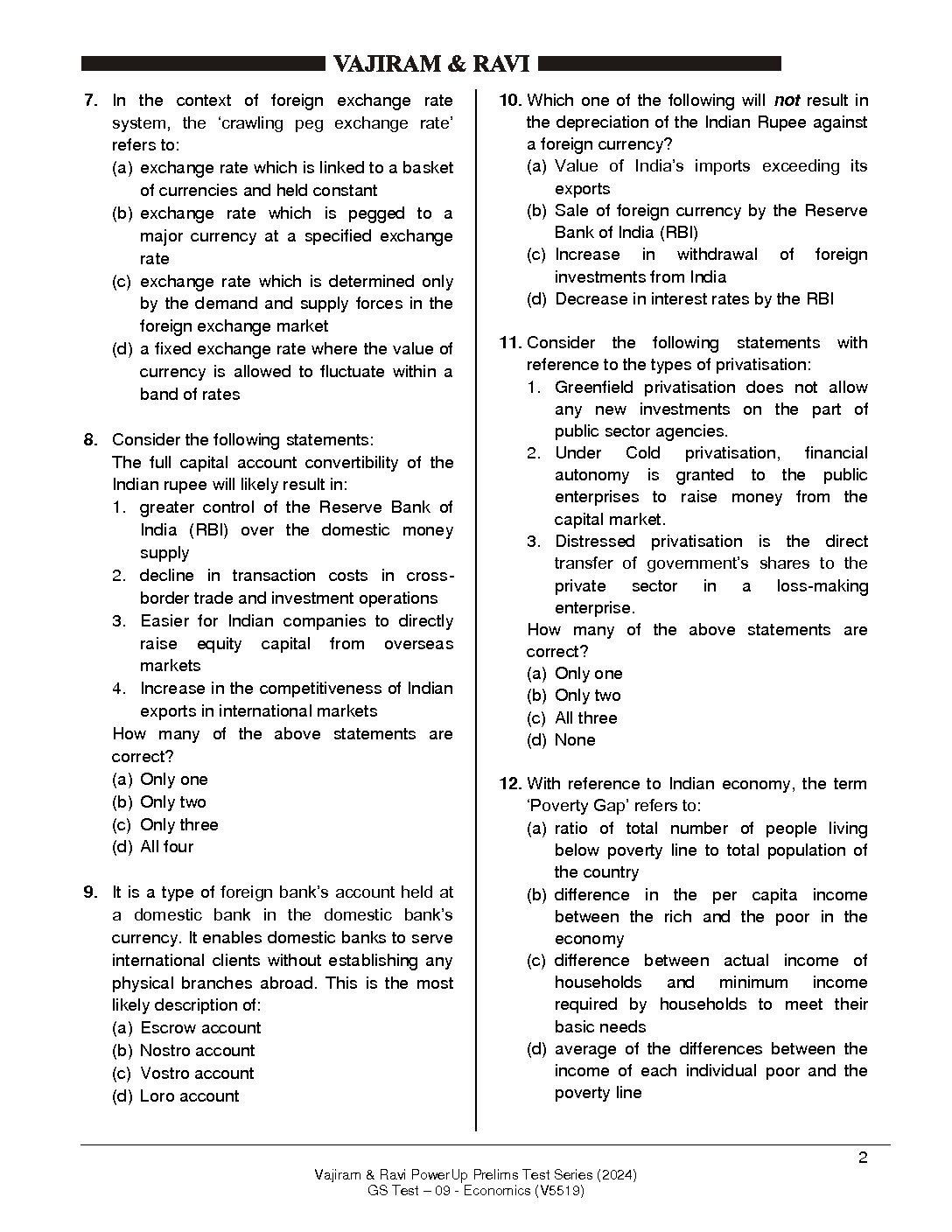 VAJIRAM & RAVI 2024 TEST -09 ECONOMICS 2024 FINAL {ENGLISH} {BLACK AND WHITE} quantity