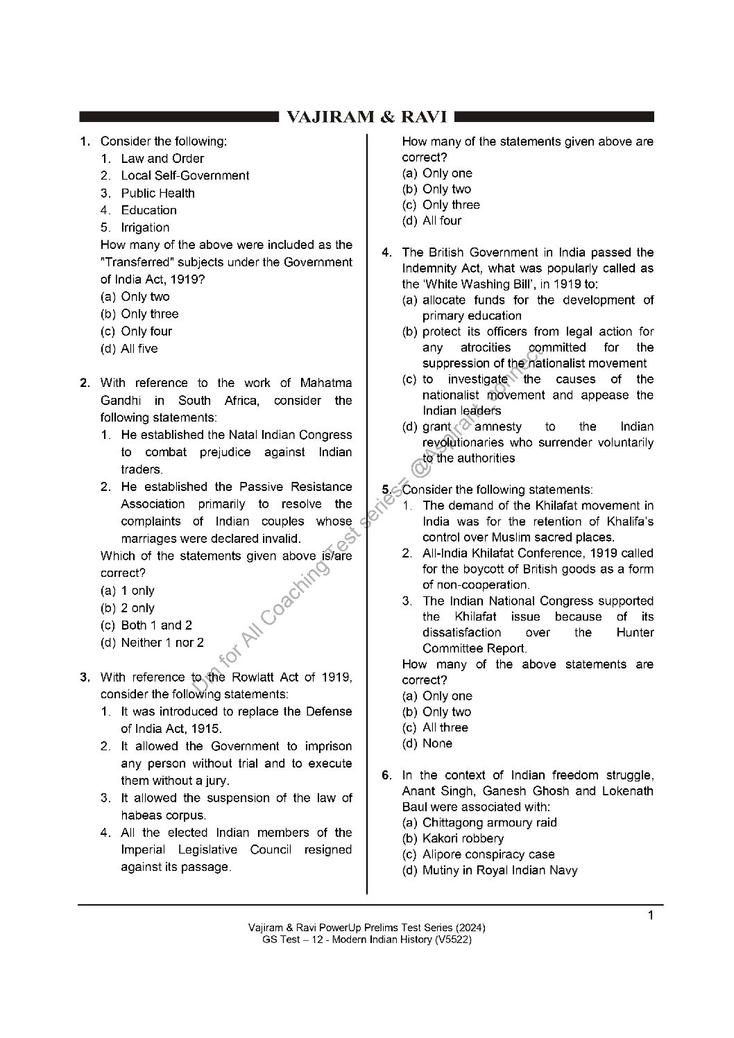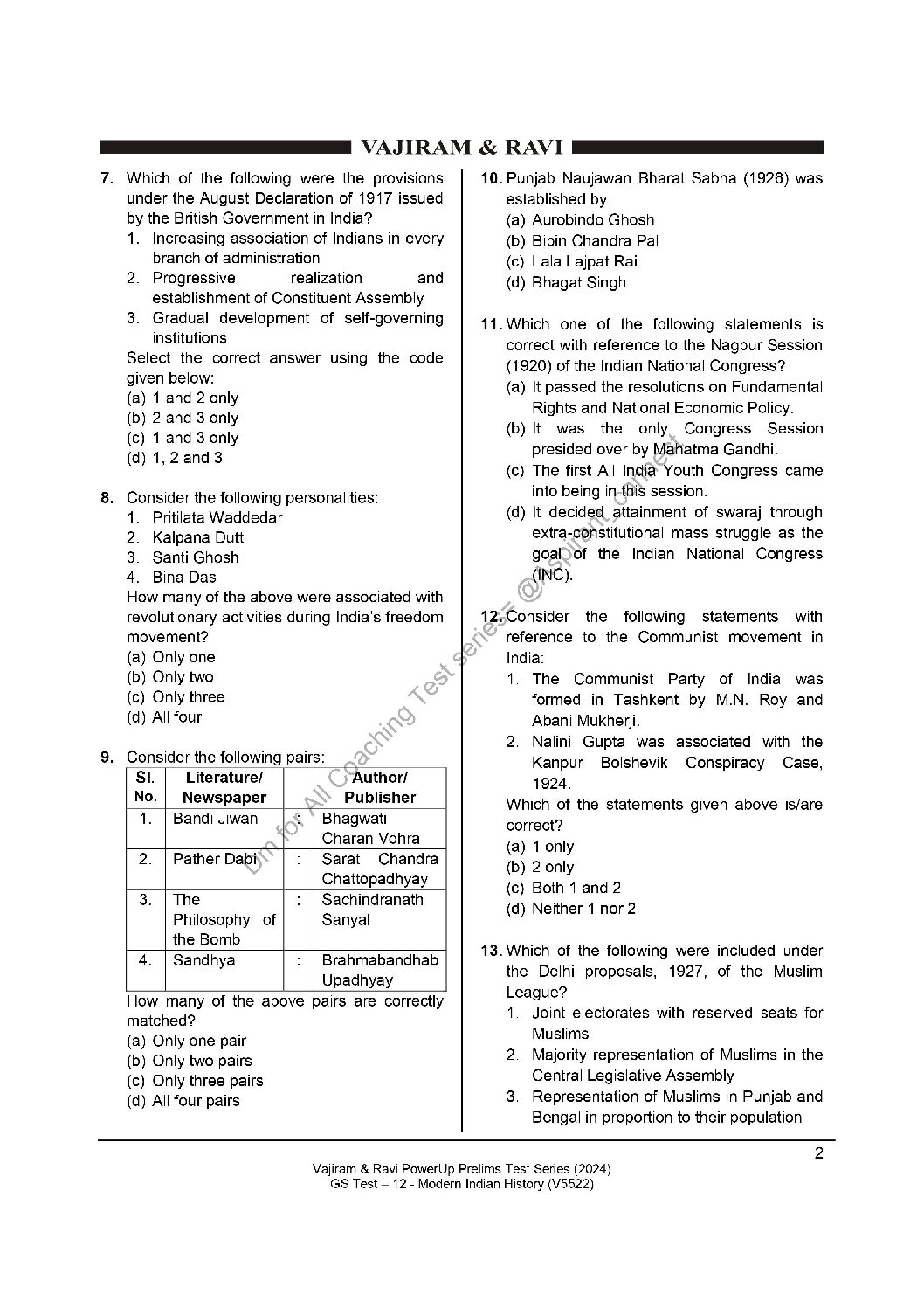 / VAJIRAM & RAVI 2024 TEST -12 MODERN HISTORY 2024 FINAL {ENGLISH} {BLACK AND WHITE}