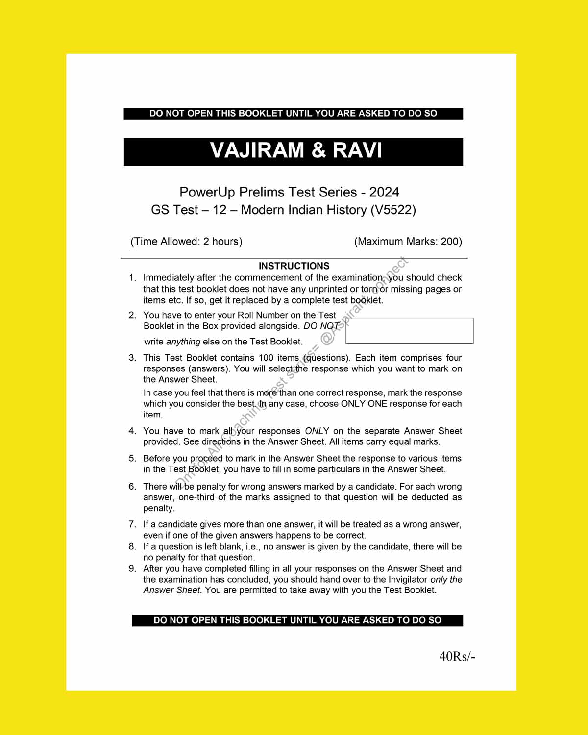 VAJIRAM & RAVI 2024 TEST -12 MODERN HISTORY 2024 FINAL {ENGLISH} {BLACK AND WHITE} quantity