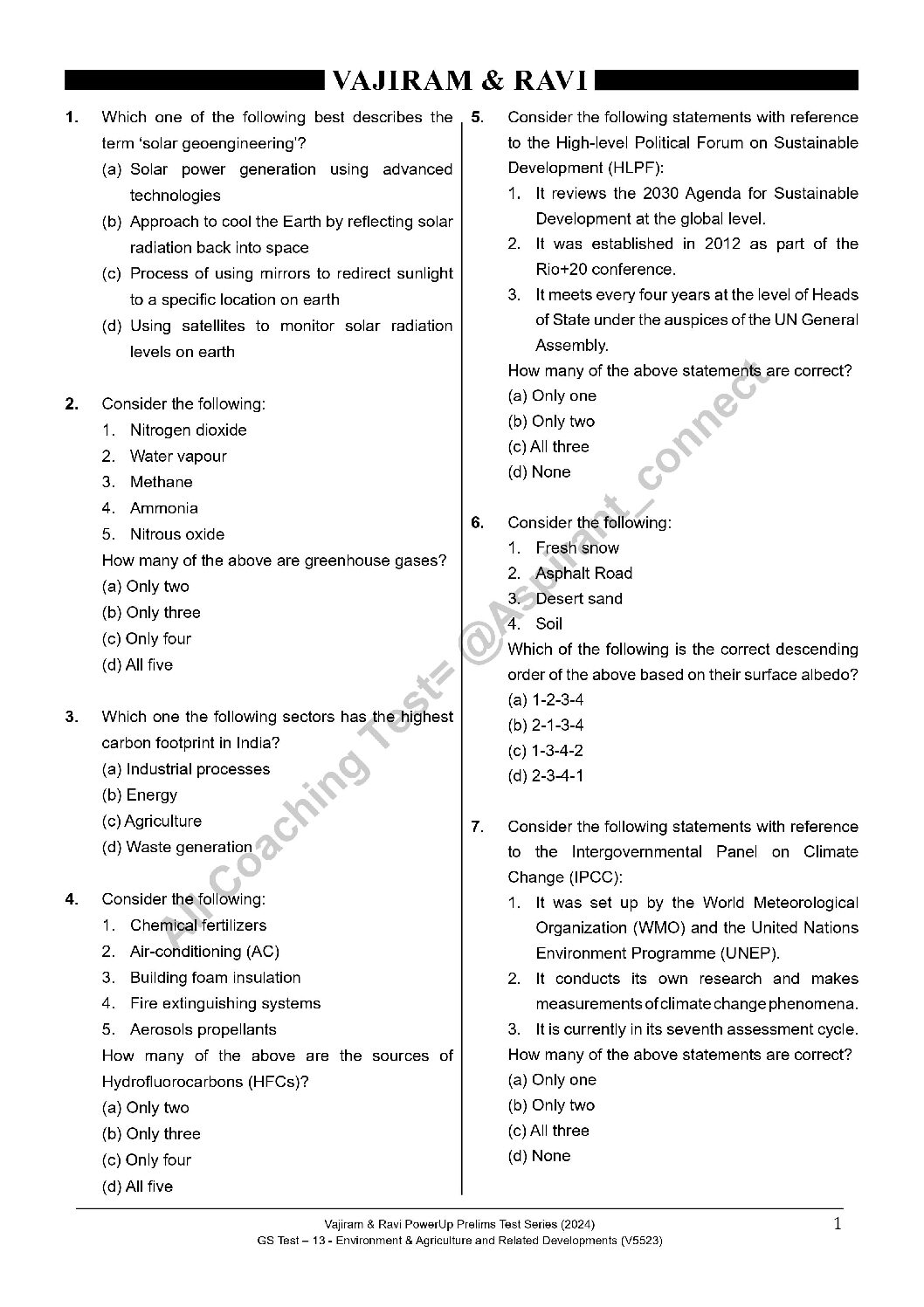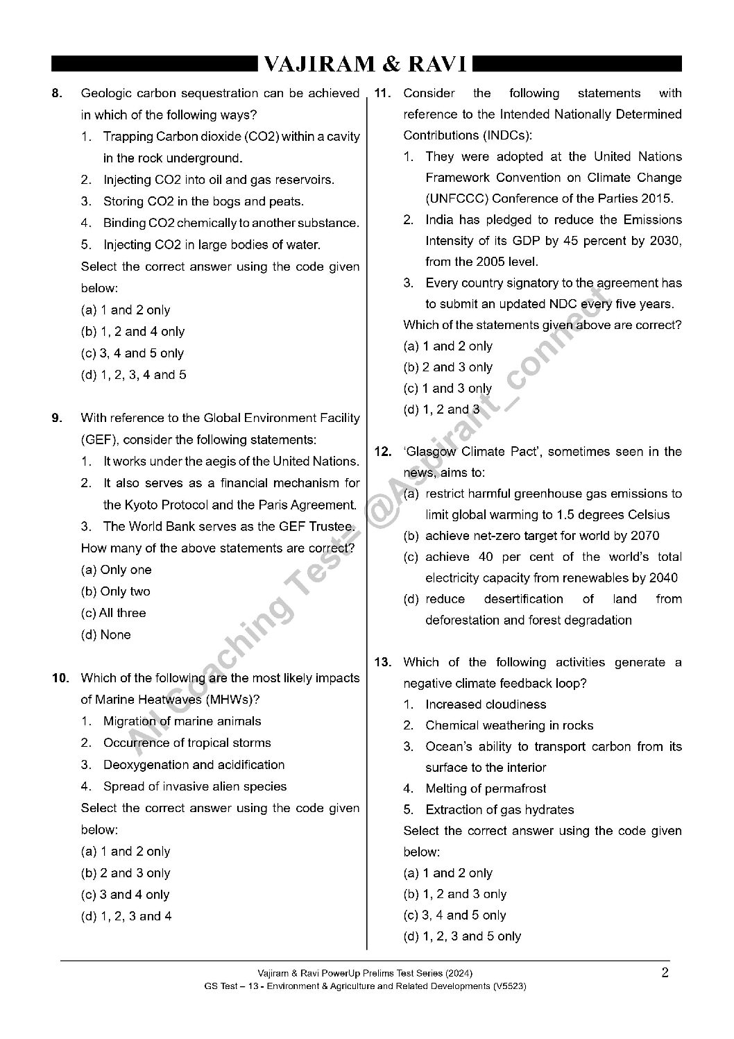 VAJIRAM & RAVI 2024 TEST-13 ENVIRONMENT & AGRICULTURE 2024 FINAL {ENGLISH} {BLACK AND WHITE}