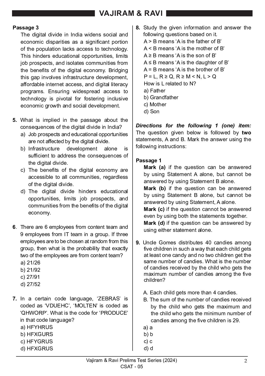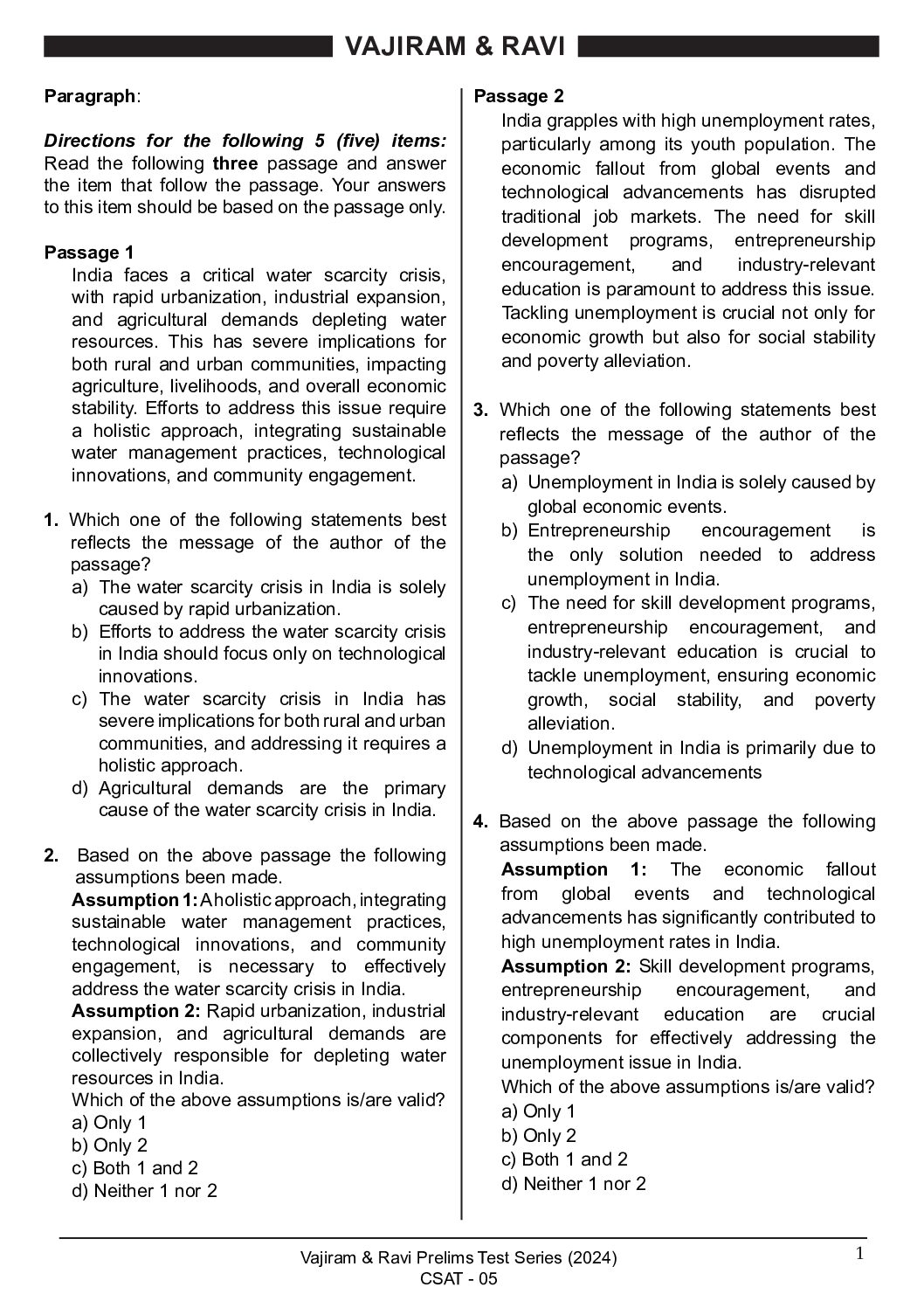 / VAJIRAM & RAVI 2024 TEST-5 2024 FINAL (ENGLISH) {BLACK AND WHITE}
