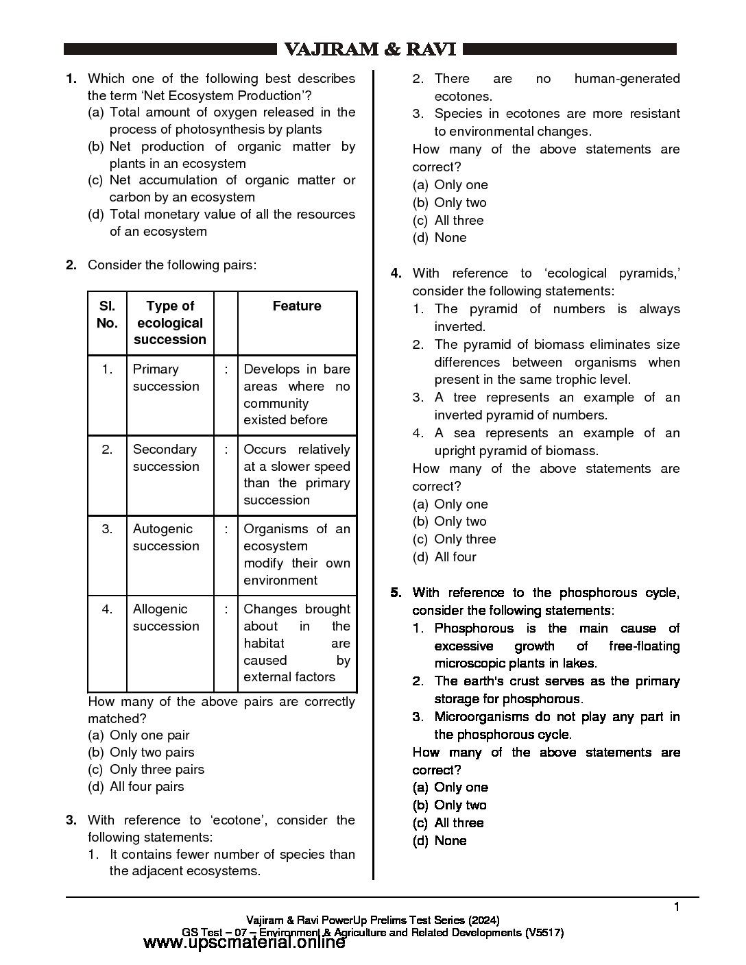 / VAJIRAM & RAVI 2024 TEST-7 ENVIRONMENT & AGRICULTURE AND RELATED DEVELOPMENT {ENGLISH}{BLACK AND WHITE}