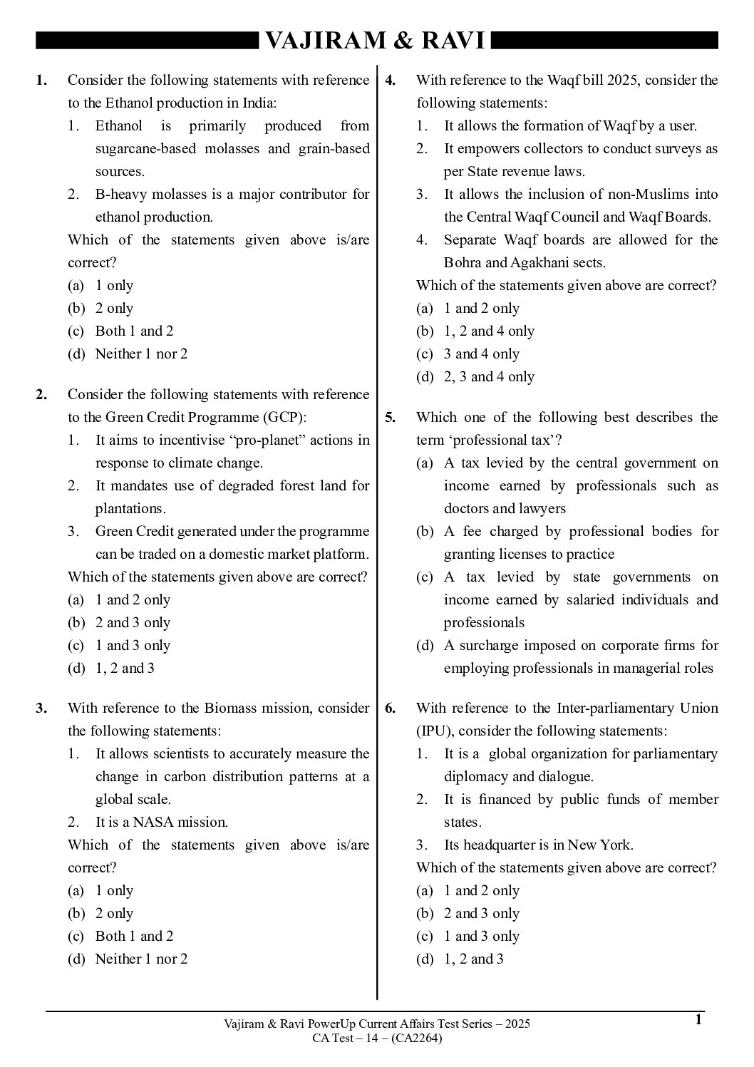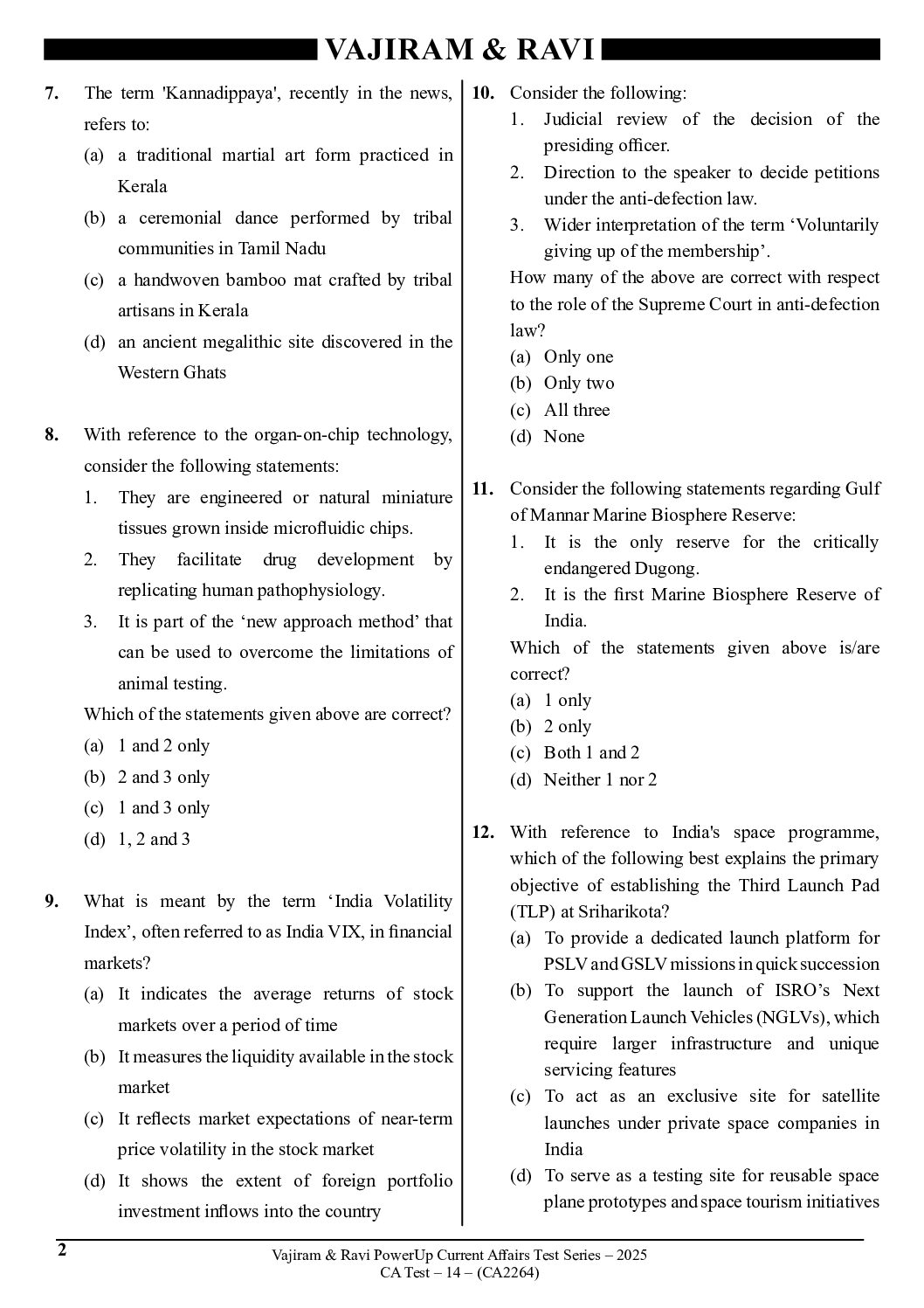 / VAJIRAM & RAVI 2025 CURRENT AFFAIRS TEST-14 (CA-2264) 2025 FINAL (ENGLISH) {BLACK AND WHITE}