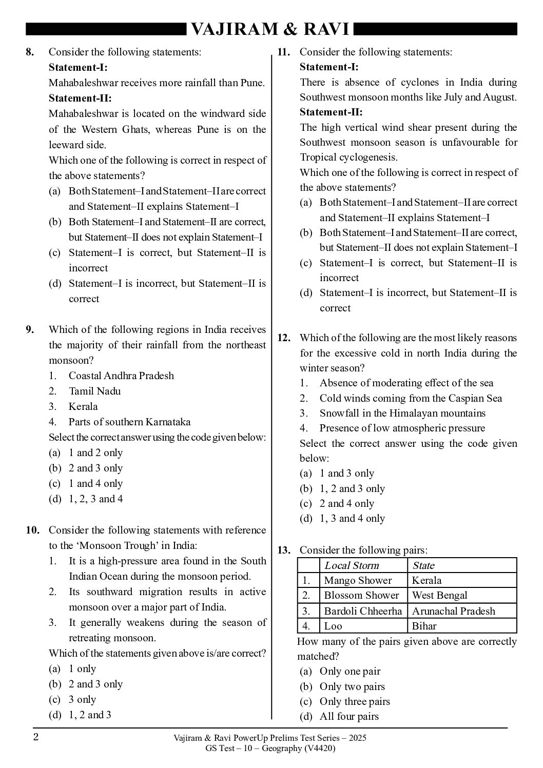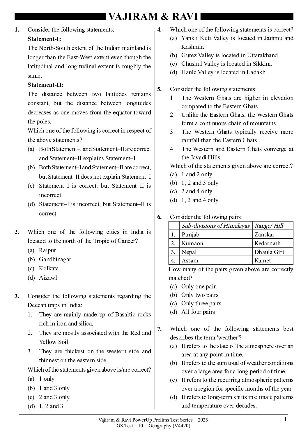 VAJIRAM& RAVI 2025 TEST-10 GEOGRAPHY (V4420)2025 FINAL (ENGLISH) {BLACK AND WHITE}