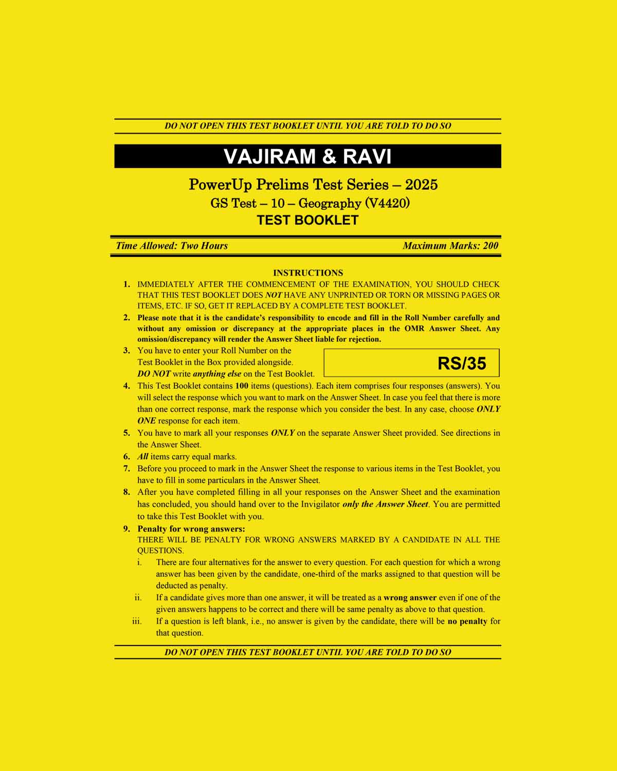/ VAJIRAM& RAVI 2025 TEST-10 GEOGRAPHY (V4420)2025 FINAL (ENGLISH) {BLACK AND WHITE}