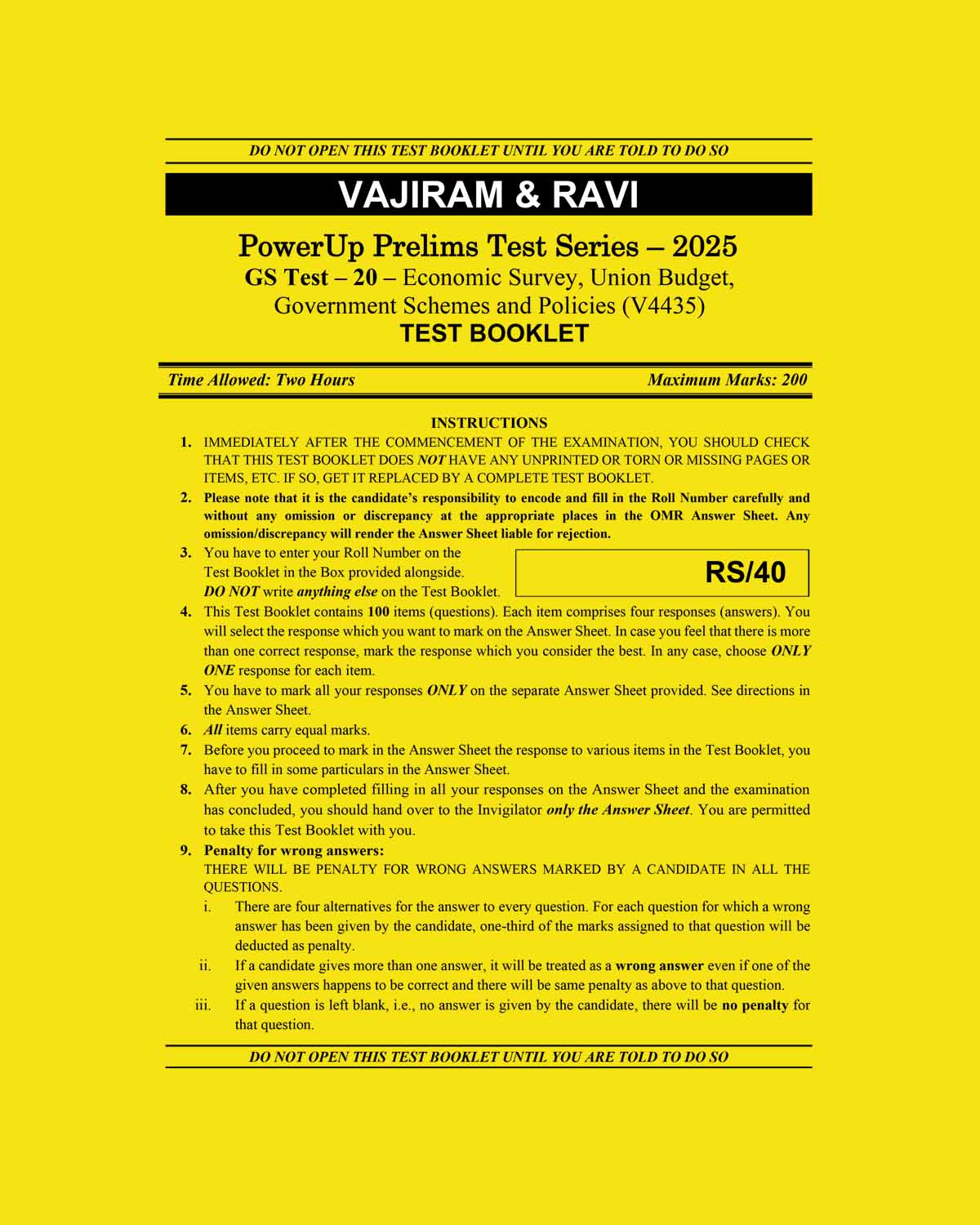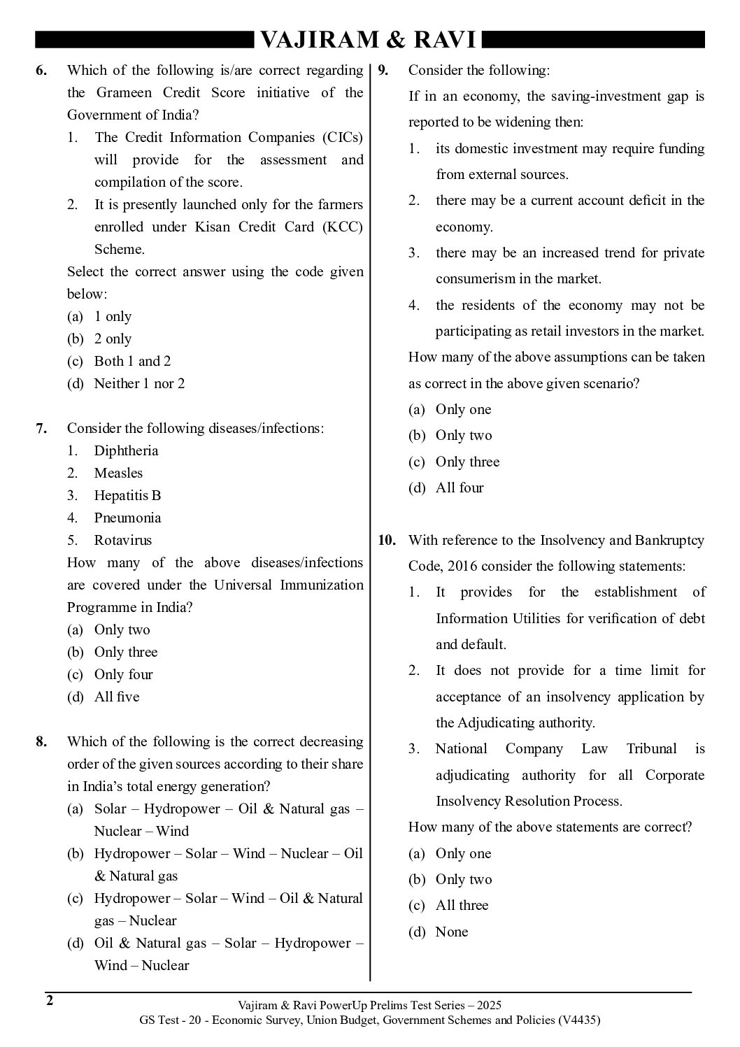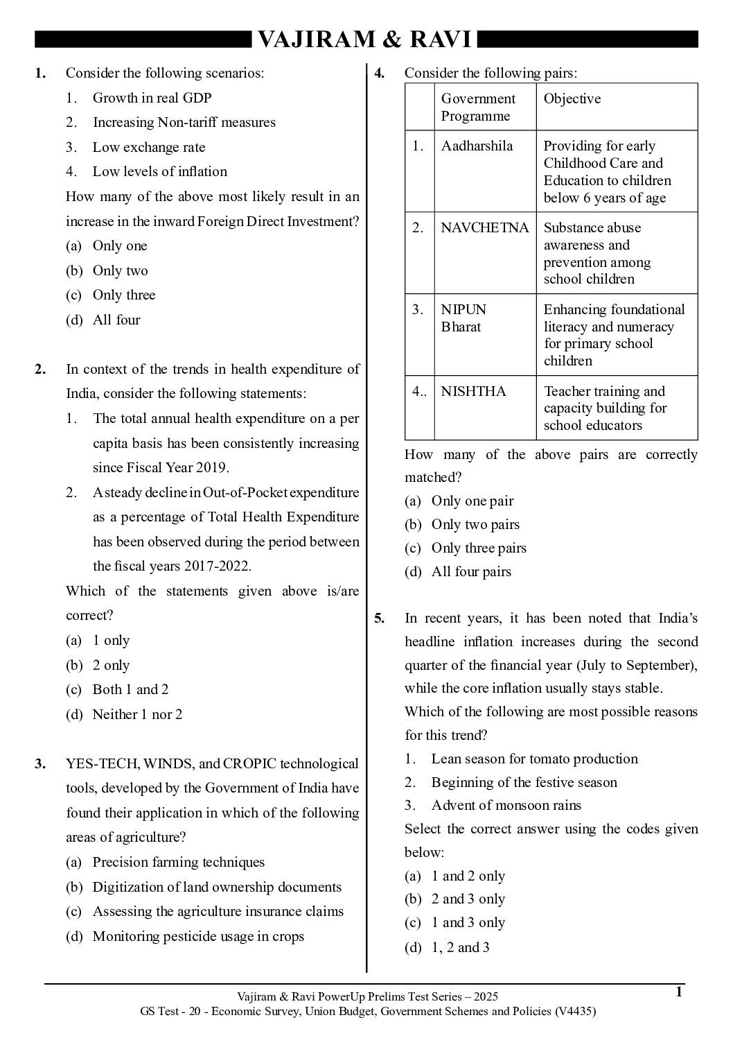 VAJIRAM & RAVI 2025 TEST-20 ECONOMY & SURVEY AND BUDGET, GOVT SCHEMES (V4435) 2025 FINAL (ENGLISH) {BLACK AND WHITE}