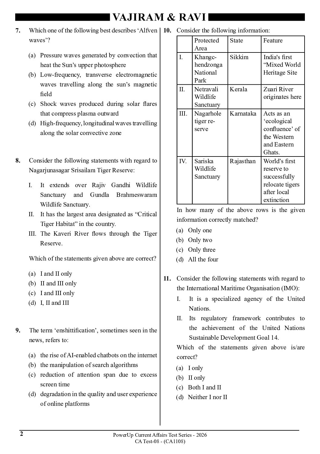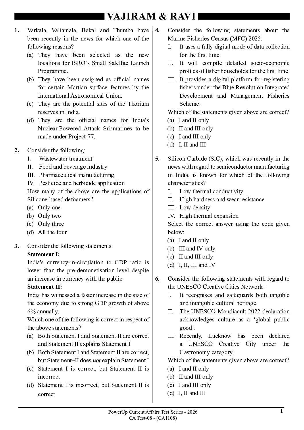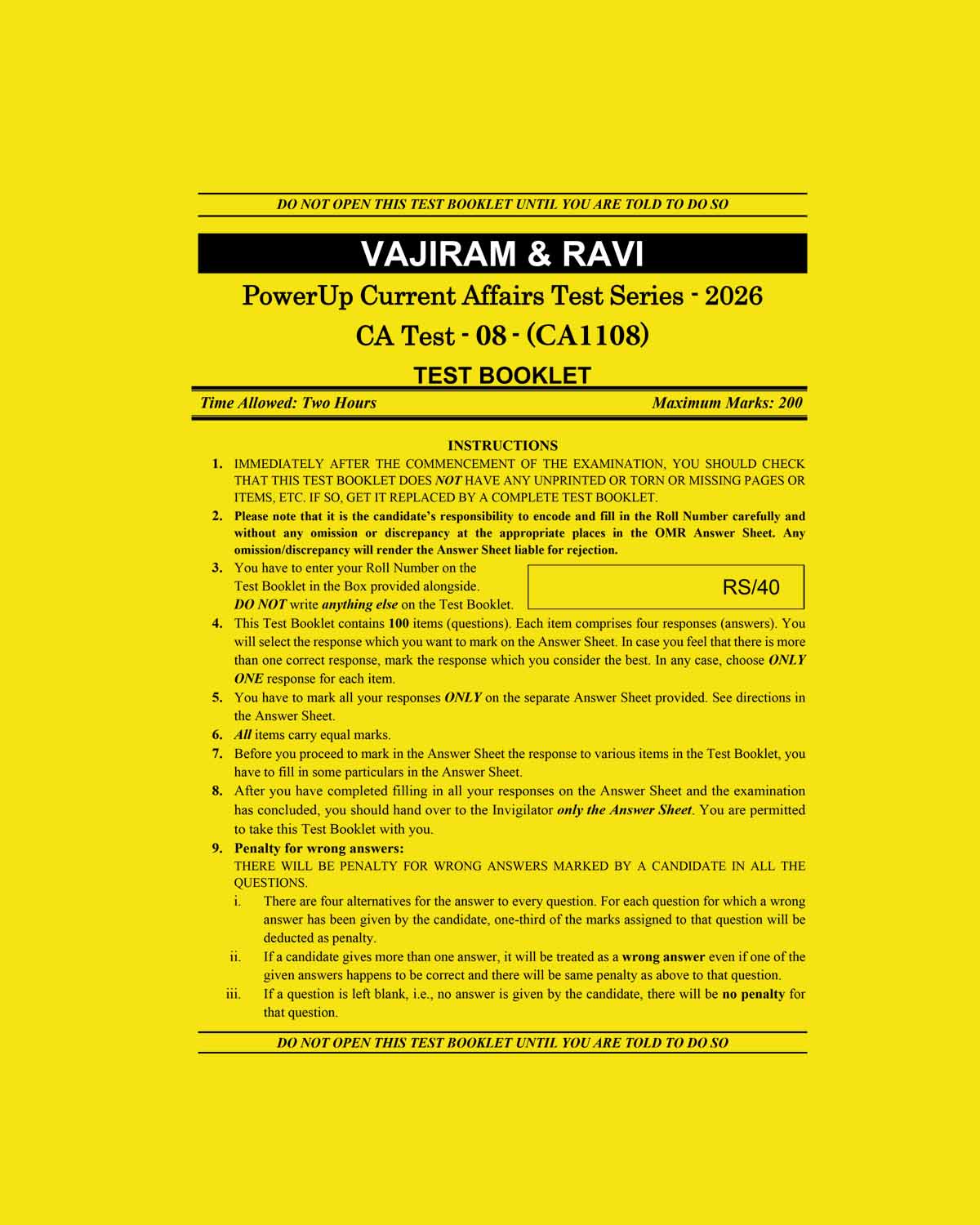 / VAJIRAM & RAVI 2026 POWERUP CURRENT AFFAIRS TEST-8 2026 FINAL (CA1108) (ENGLISH) {BLACK AND WHITE}