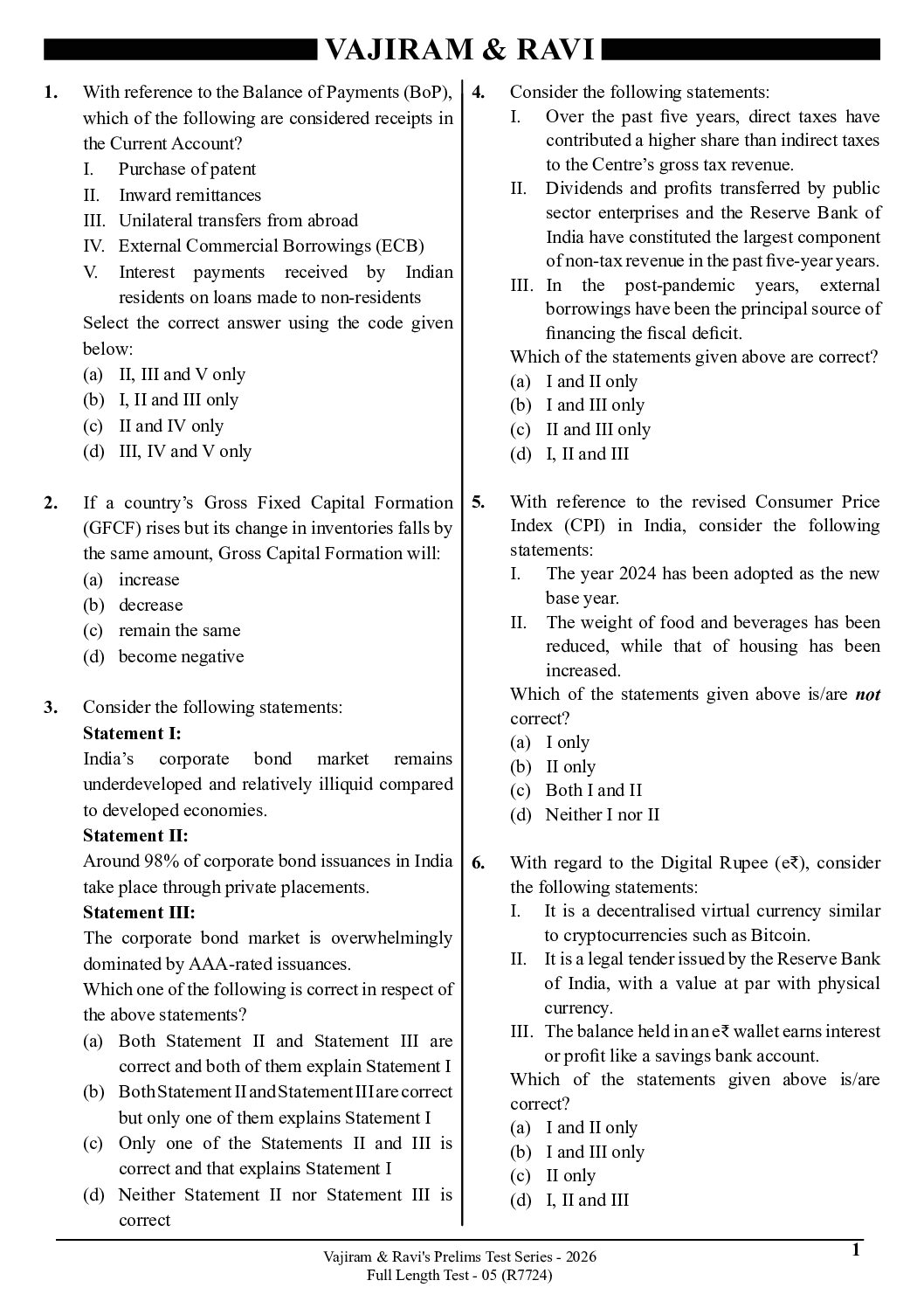 VAJIRAM & RAVI 2026 PT TEST-24 FULL TEST-5 (R7724) 2026 FINAL (ENGLISH) {BLACK AND WHITE}