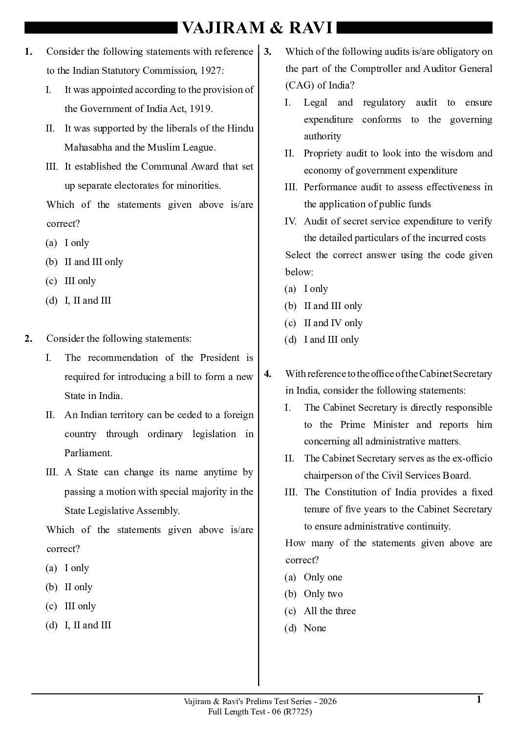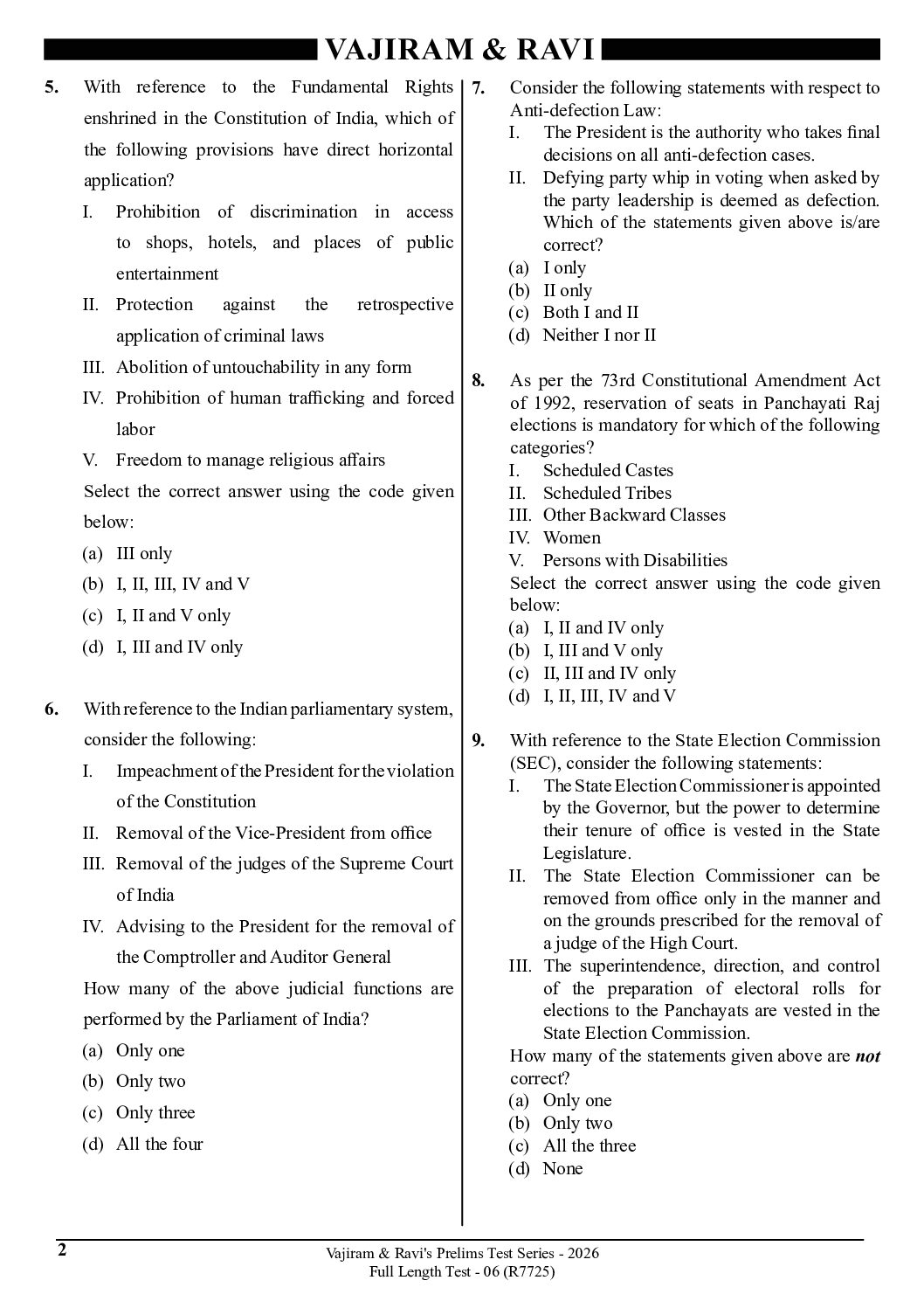 / VAJIRAM & RAVI 2026 PT TEST-25 FULL TEST-6 (R7725) 2026 FINAL (ENGLISH) {BLACK AND WHITE}