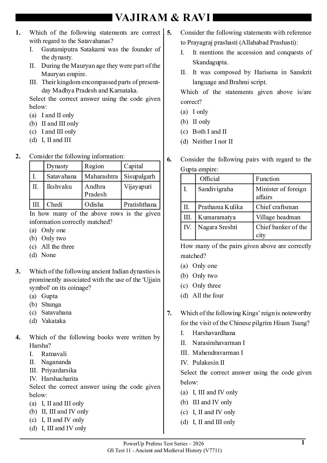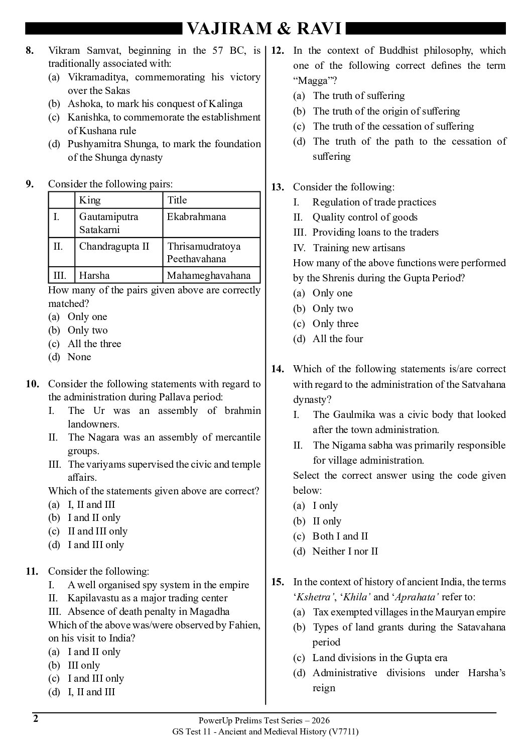 VAJIRAM & RAVI 2026 TEST-11 ANCIENT AND MEDIEVAL HISTORY (V7711)2026 FINAL (ENGLISH) {BLACK AND WHITE}