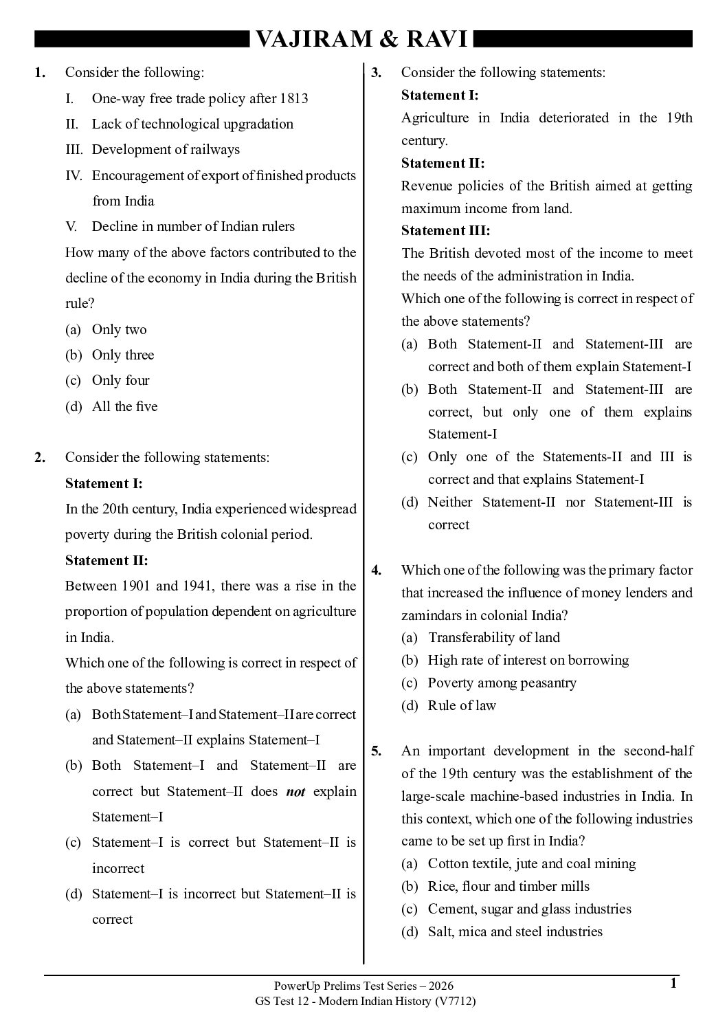 / VAJIRAM & RAVI 2026 TEST-12 MODERN HISTORY (V7712) 2026 FINAL (ENGLISH) {BLACK AND WHITE}