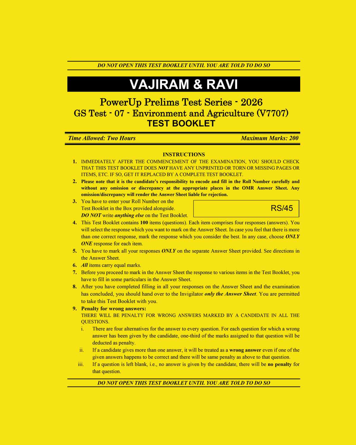 / VAJIRAM & RAVI 2026 TEST-7 ENVIRONMENT AND AGRICULTURE (V7707) 2026 FINAL (ENGLISH) {BLACK AND WHITE}