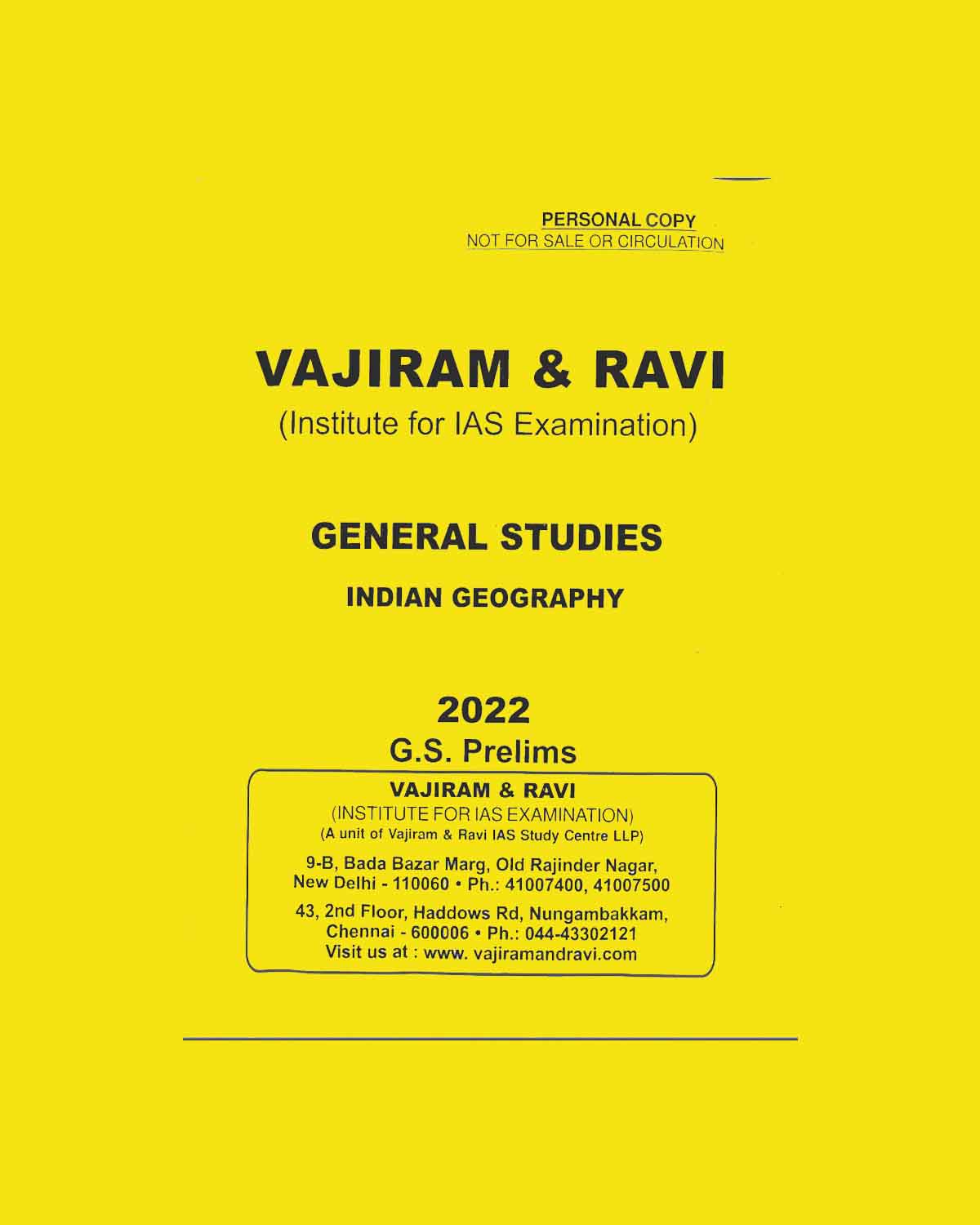 VAJIRAM & RAVI GENERAL STUDIES 2022 ( INSTITUTE FOR IAS EXAMINATION) INDIAN GEOGRAPHY-G.S.PRELIMS PRINTED NOTES 2022 (BLACK & WHITE)