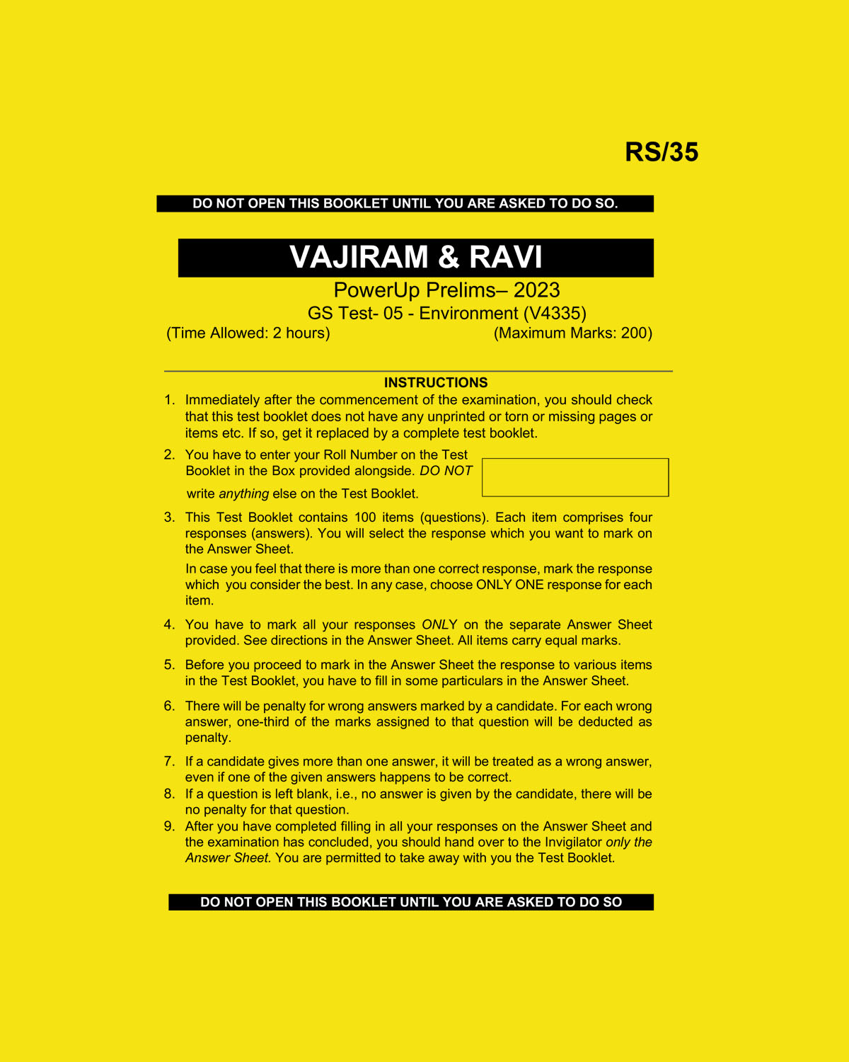 / VAJIRAM & RAVI POWERUP PRELIMS 2023 TEST-5 ENVIRONMENT (BLACK & WHITE)