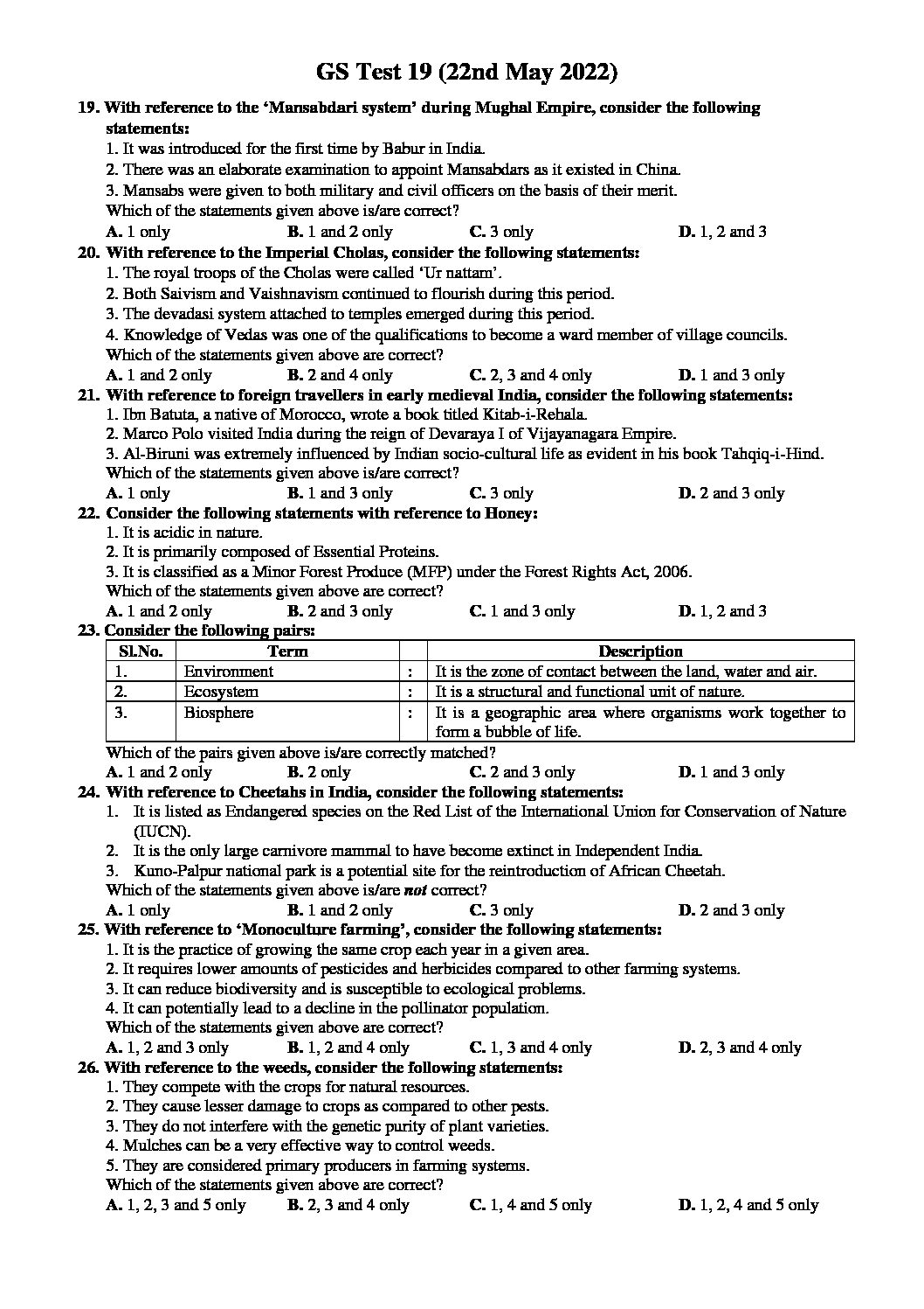 VAJIRAM & RAVI PRELIMS 2022 TEST-19 (2022) FULL LENGTH TEST(BLACK & WHITE)