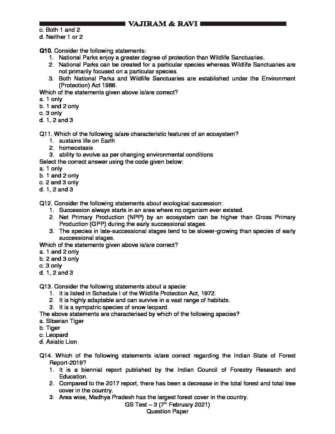 VAJIRAM & RAVI PRELIMS GS 2021 TEST – 3