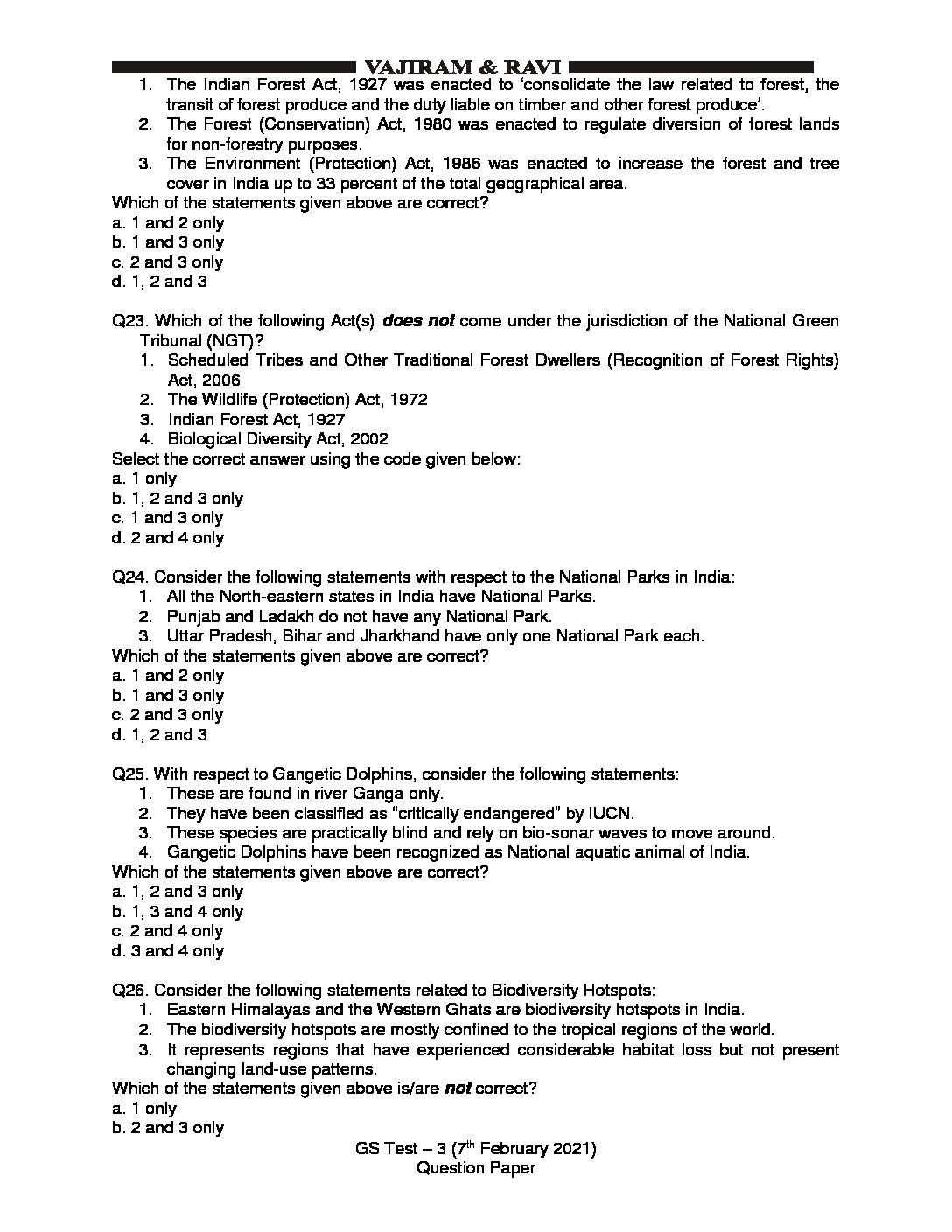 / VAJIRAM & RAVI PRELIMS GS 2021 TEST – 3
