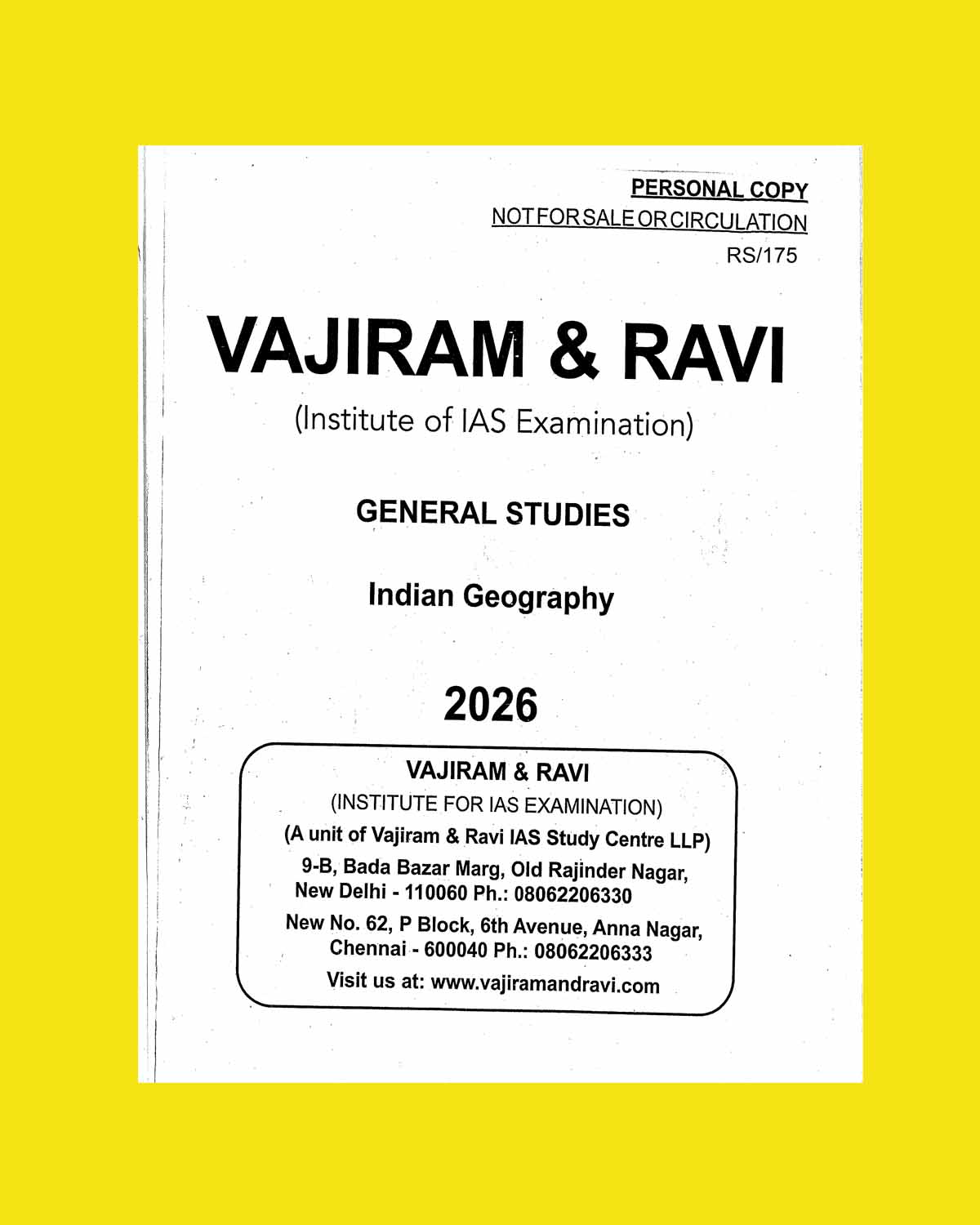 VAJIRAM & RAVI YOLLOW BOOK PRINTED NOTES 2026 INDIAN GEOGRAPHY 2026 FINAL (ENGLISH) {BLACK AND WHITE} quantity