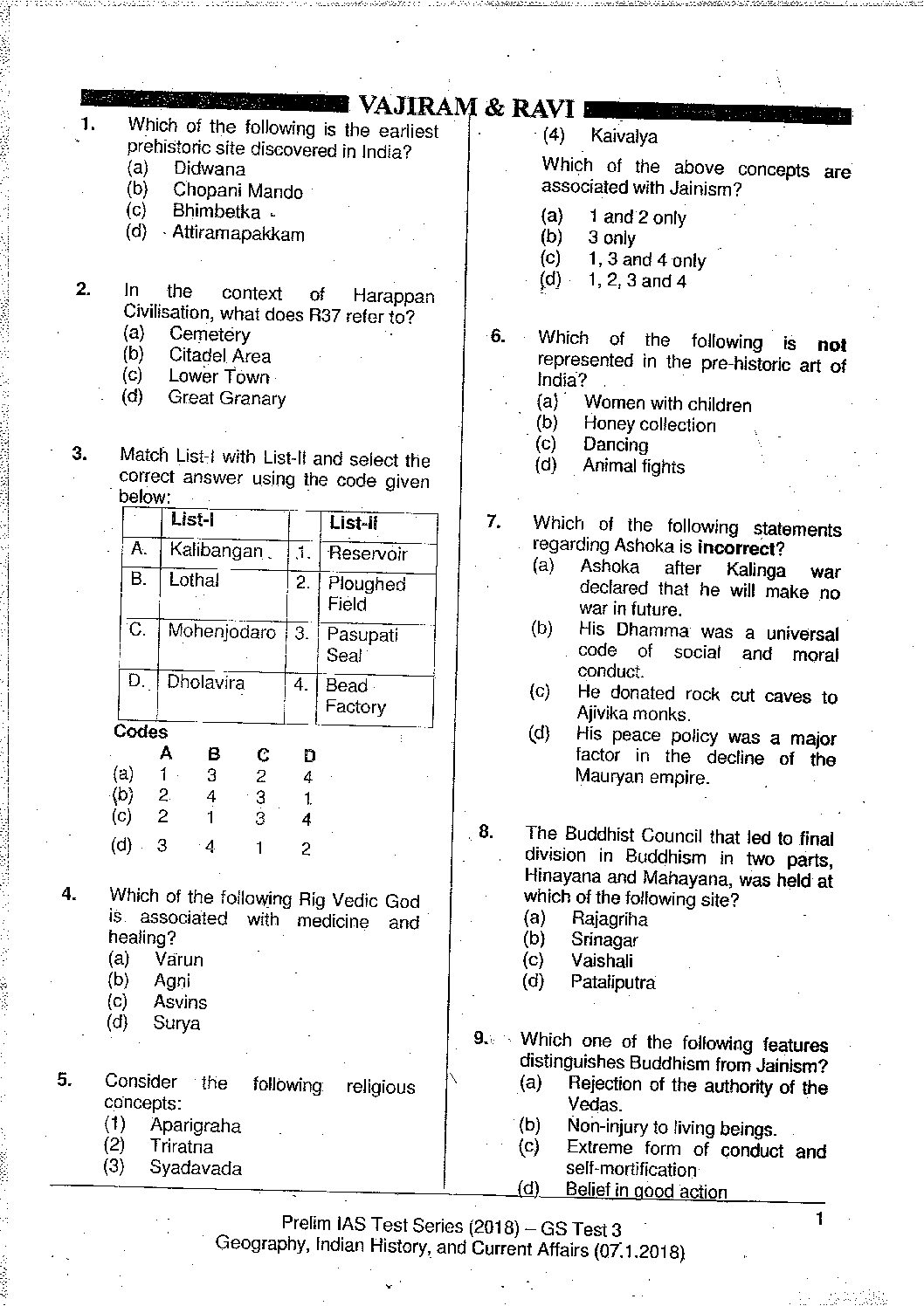VAJIRAN AND RAVI-PRELIM IAS TEST SERIES-2018-G.S TEST-3-(17-1-2018)-GEOGRAPHY,INDIAN HISTORY AND CURRENT AFFAIRS