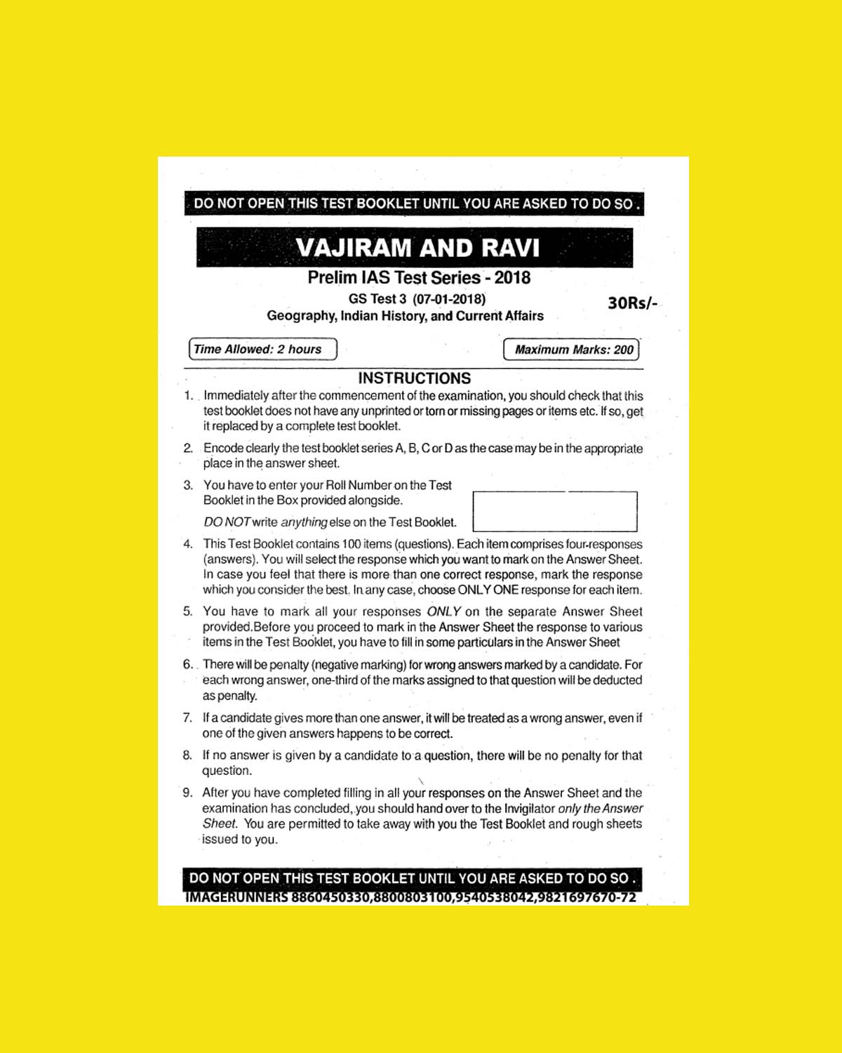 VAJIRAN AND RAVI-PRELIM IAS TEST SERIES-2018-G.S TEST-3-(17-1-2018)-GEOGRAPHY,INDIAN HISTORY AND CURRENT AFFAIRS quantity