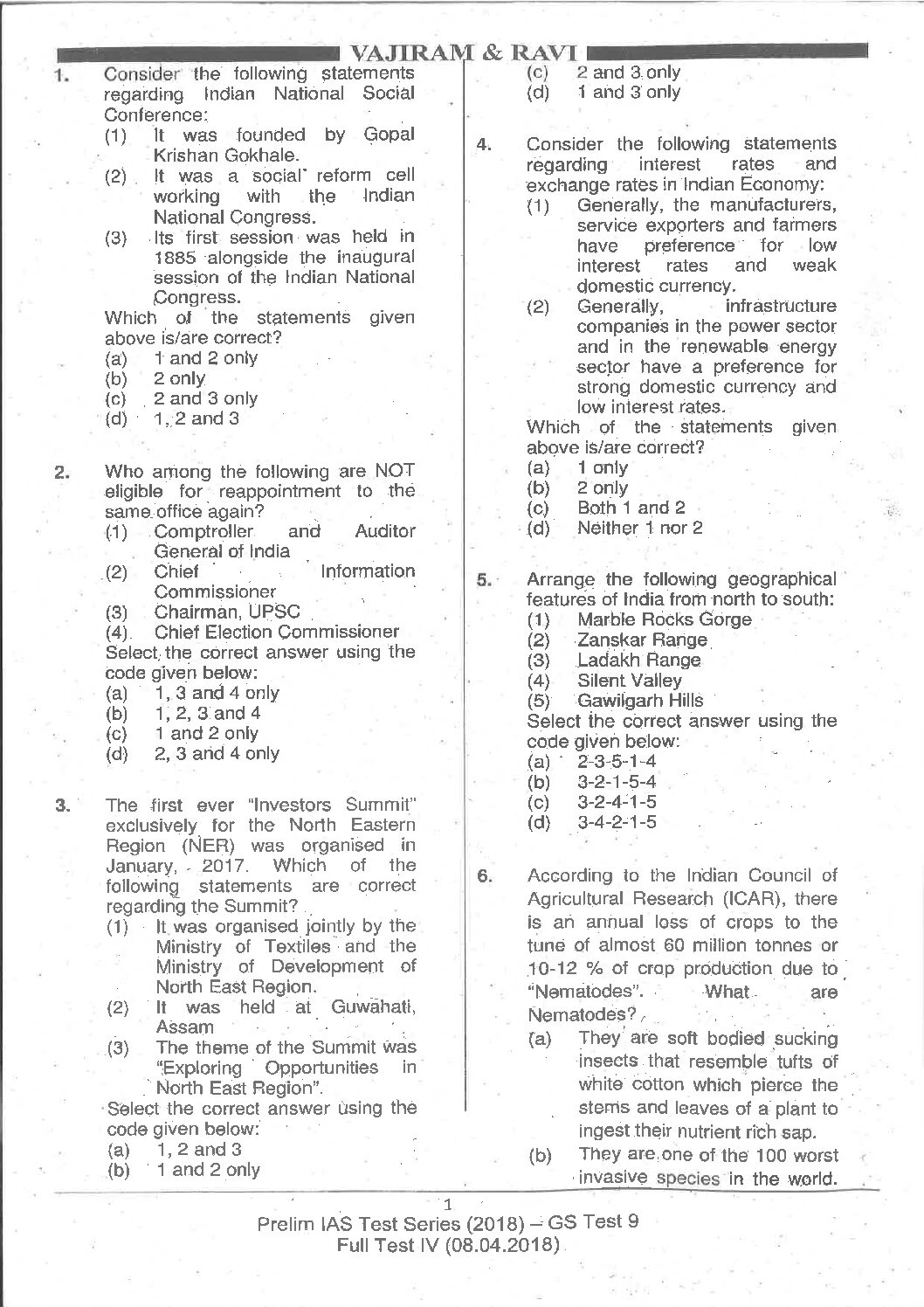 VAJIRAN AND RAVI-PRELIM IAS TEST SERIES-2018-G.S TEST-9-(8-04-2018)-GENERAL STUDIES (PAPER-1)-FULL TEST-4