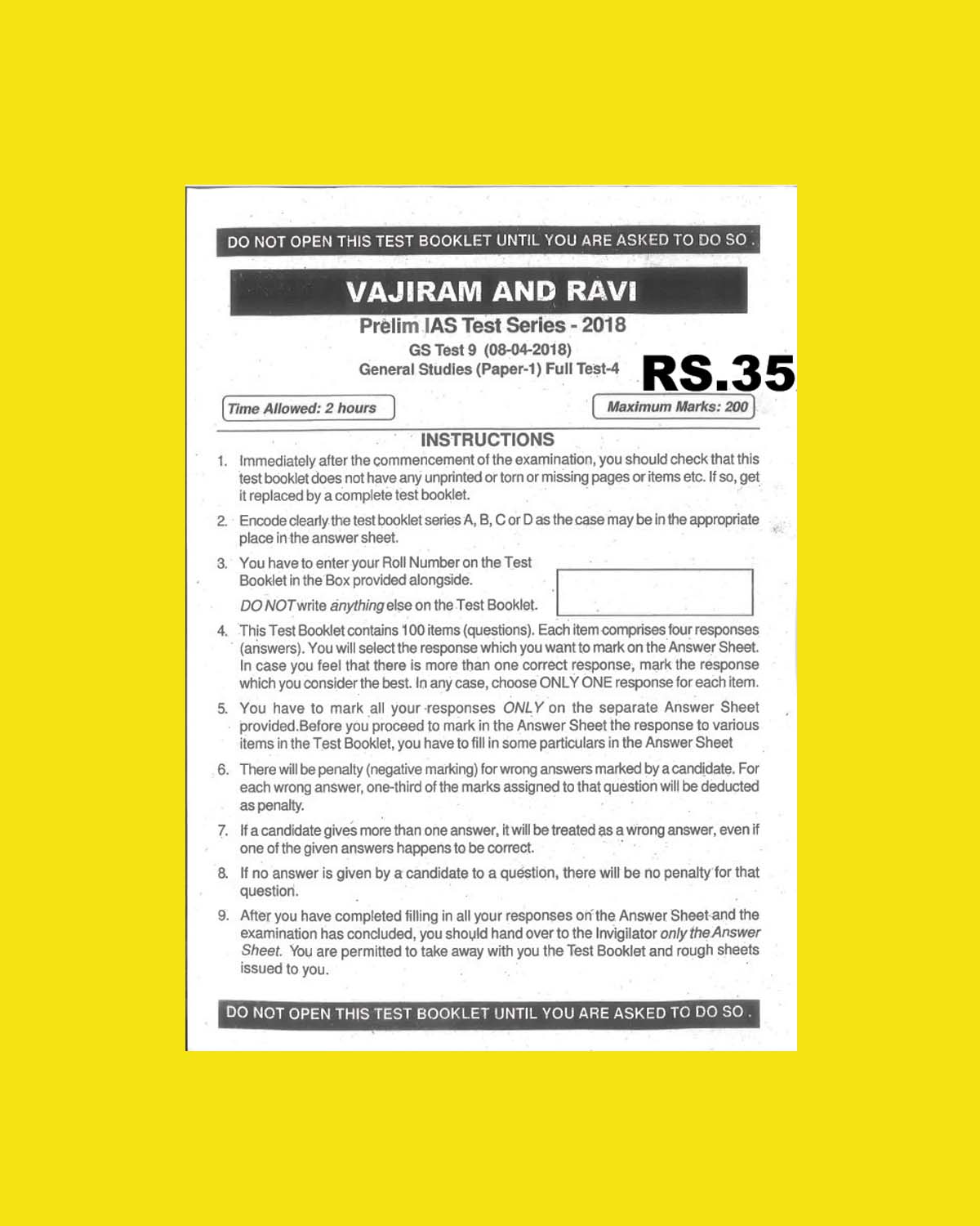 VAJIRAN AND RAVI-PRELIM IAS TEST SERIES-2018-G.S TEST-9-(8-04-2018)-GENERAL STUDIES (PAPER-1)-FULL TEST-4 quantity