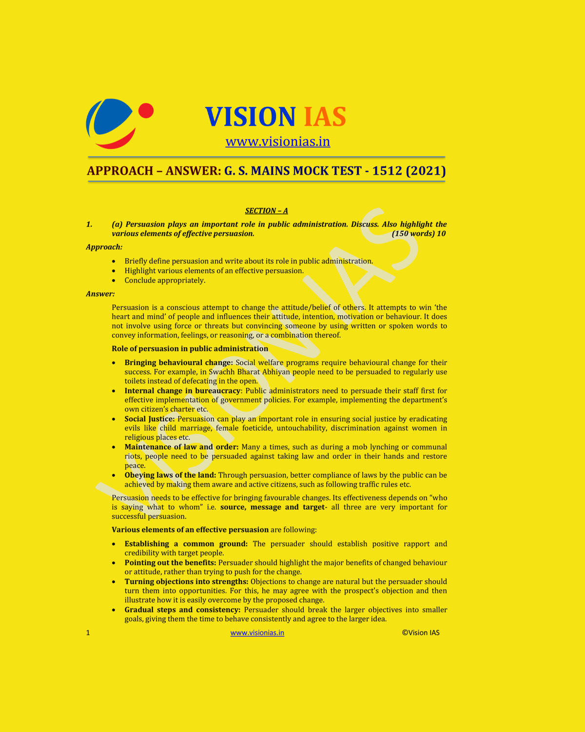 / VISION IAS 2021 MODEL ANSWER APPROACH – ANSWER G.S MAINS MOCK TEST-1512 (2021) (MODEL PAPERS ) (BLACK & WHITE)