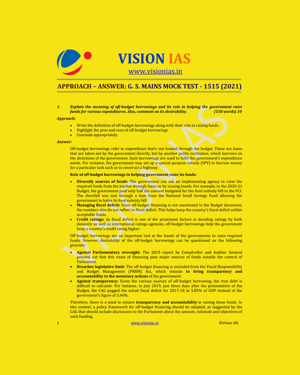 / VISION IAS 2021 MODEL ANSWER APPROACH-ANSWER G.S MAINS MOCK TEST-1515 (2021) MODEL PAPERS (BLACK & WHITE)